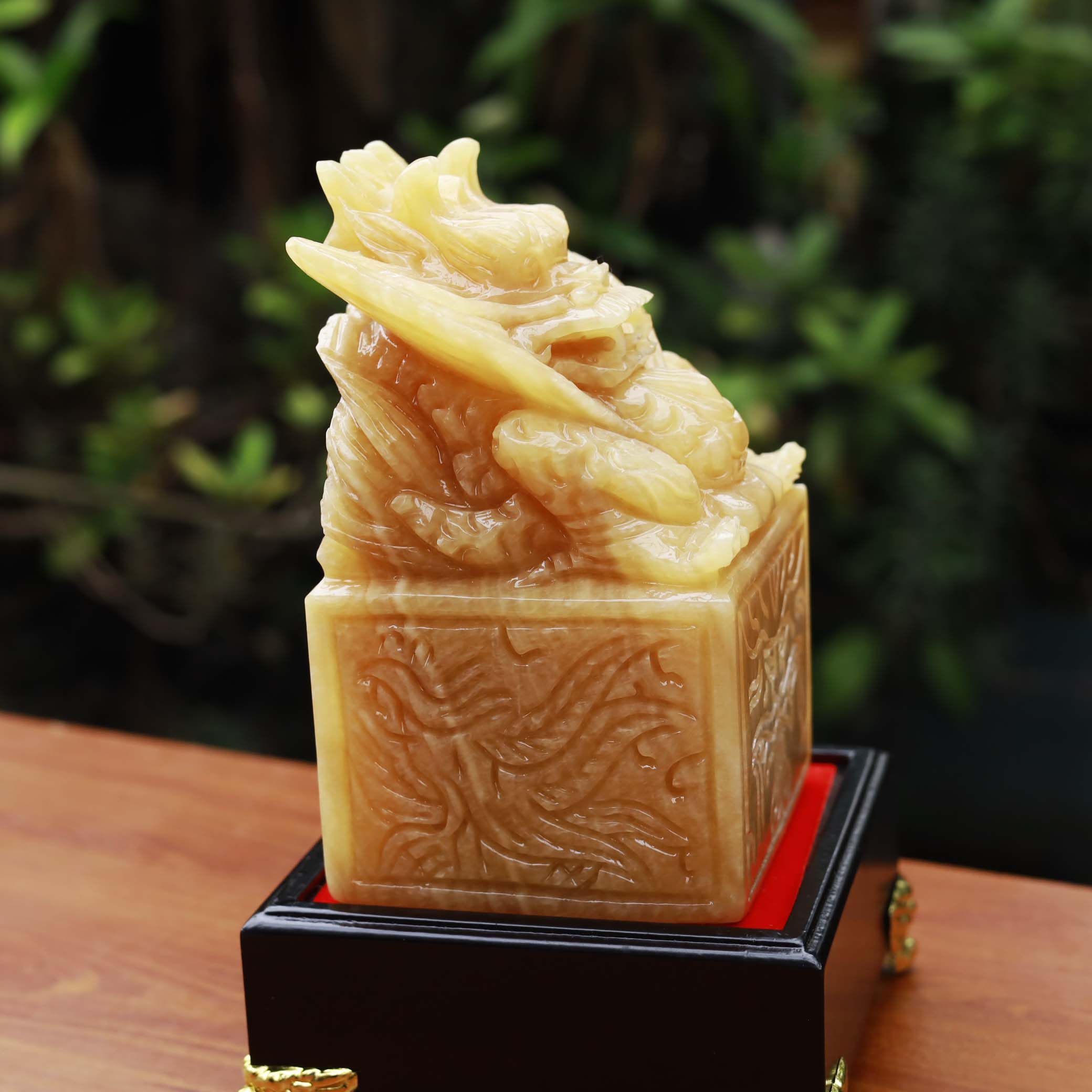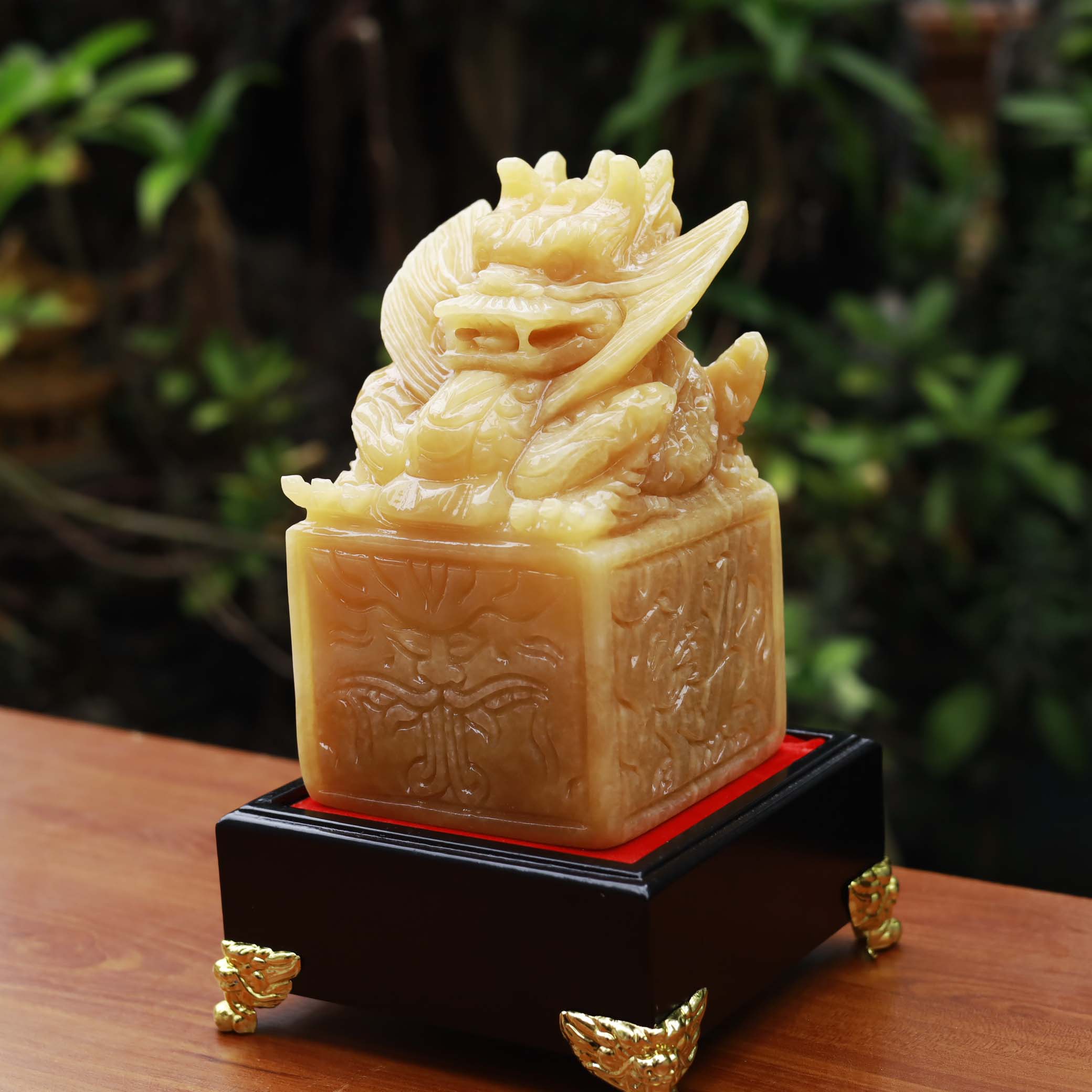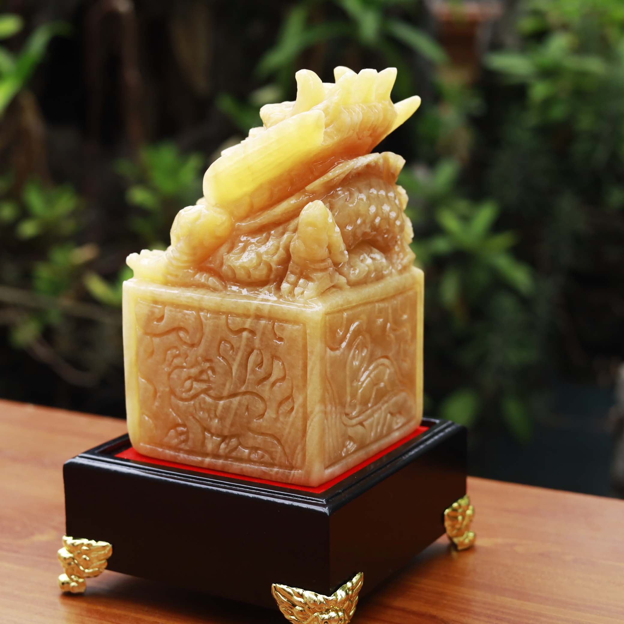 Ấn Rồng làm từ đá Ngọc Hoàng Long là loại đá được đánh giá rất cao về mặt phong thủy, được cho là có khả năng thu hút tài lộc, tạo nên sự thịnh vượng và hạnh phúc trong cuộc sống.