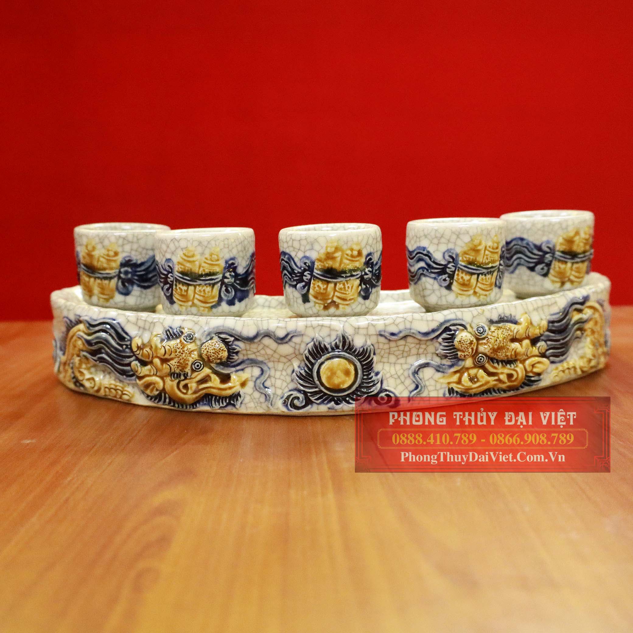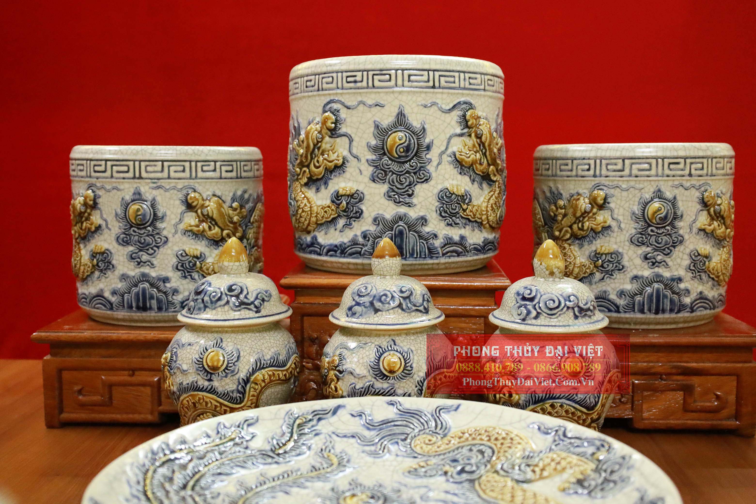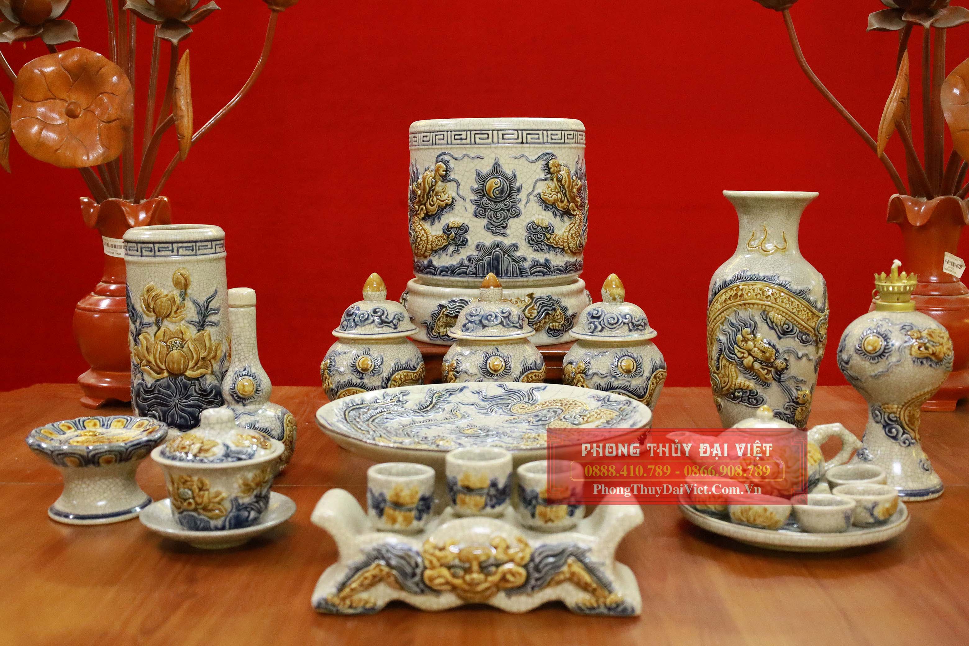 Bộ đồ thờ Bát Tràng men rạn đắp nổi cao cấp