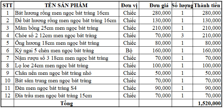 Bộ đồ thờ men ngọc Bát Tràng- ban gia tiên và thần linh - MN03