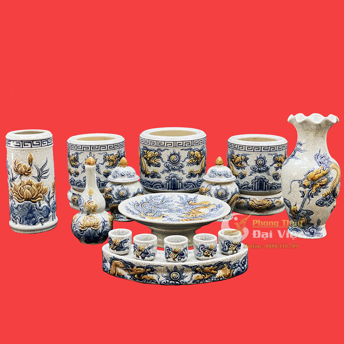 Thông Tin chung về bộ đồ thờ men rạn đắp nổi cao cấp Bát Tràng: