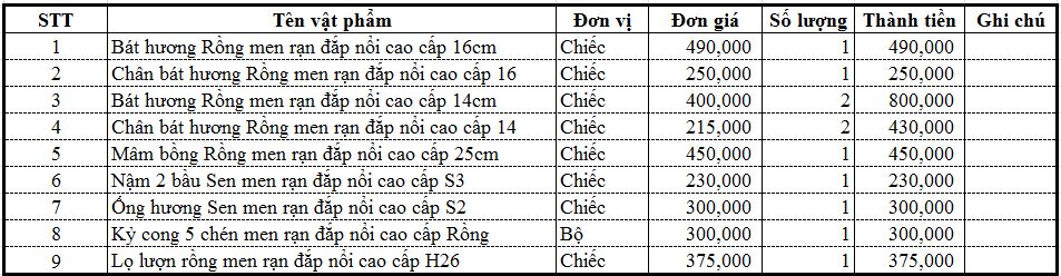 Thông Tin chung về bộ đồ thờ men rạn đắp nổi cao cấp Bát Tràng: