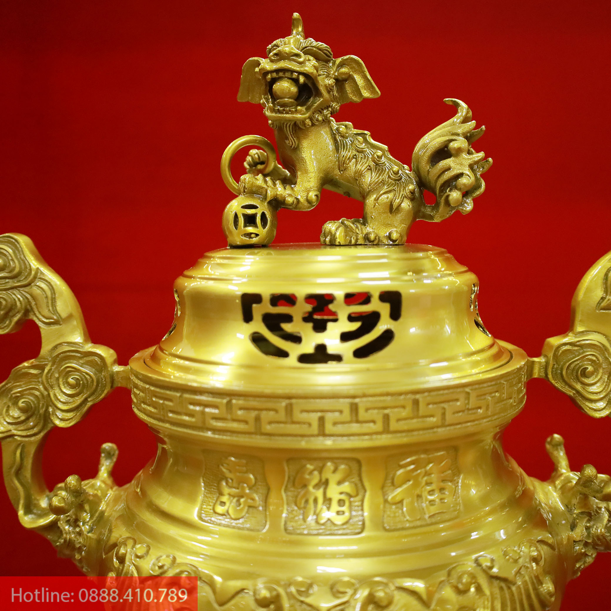 Đỉnh đồng là biểu tượng tượng trưng cho mặt trời. Do đó, bộ phần này luôn thể hiện sự vững chãi, uy nghiêm của ban thờ. Đỉnh đồng gồm có: Đế, thân và nắp đỉnh. Trong đó, nắp đỉnh nổi bật với tượng Nghê đang ngậm viên ngọc mang ý nghĩa bảo vệ và xua đuổi những điều không may mắn đến với gia chủ.