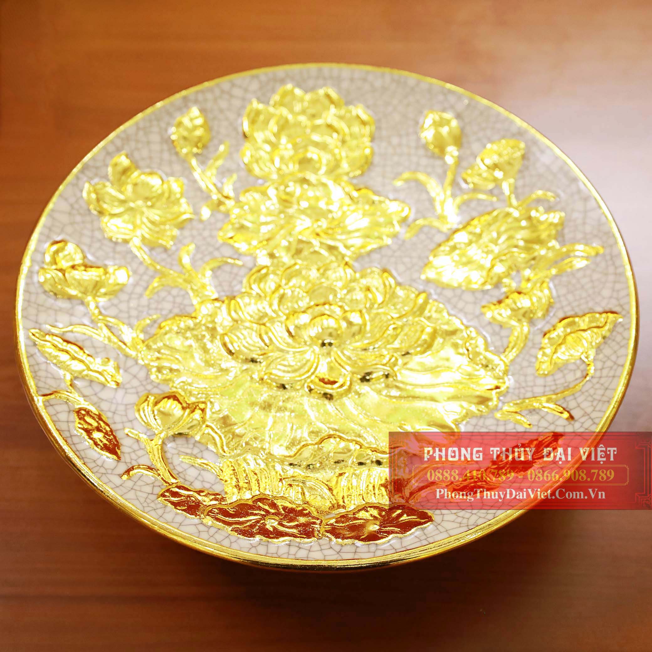 Mâm bồng men rạn đắp nổi dát vàng 24k: Mâm bồng được làm từ chất men rạn đắp nổi, sau đó dát vàng 24k tạo nên sự sáng bóng và sang trọng. Sự kết hợp giữa men rạn và lớp vàng thể hiện sự kết hợp hoàn hảo giữa truyền thống và hiện đại.
