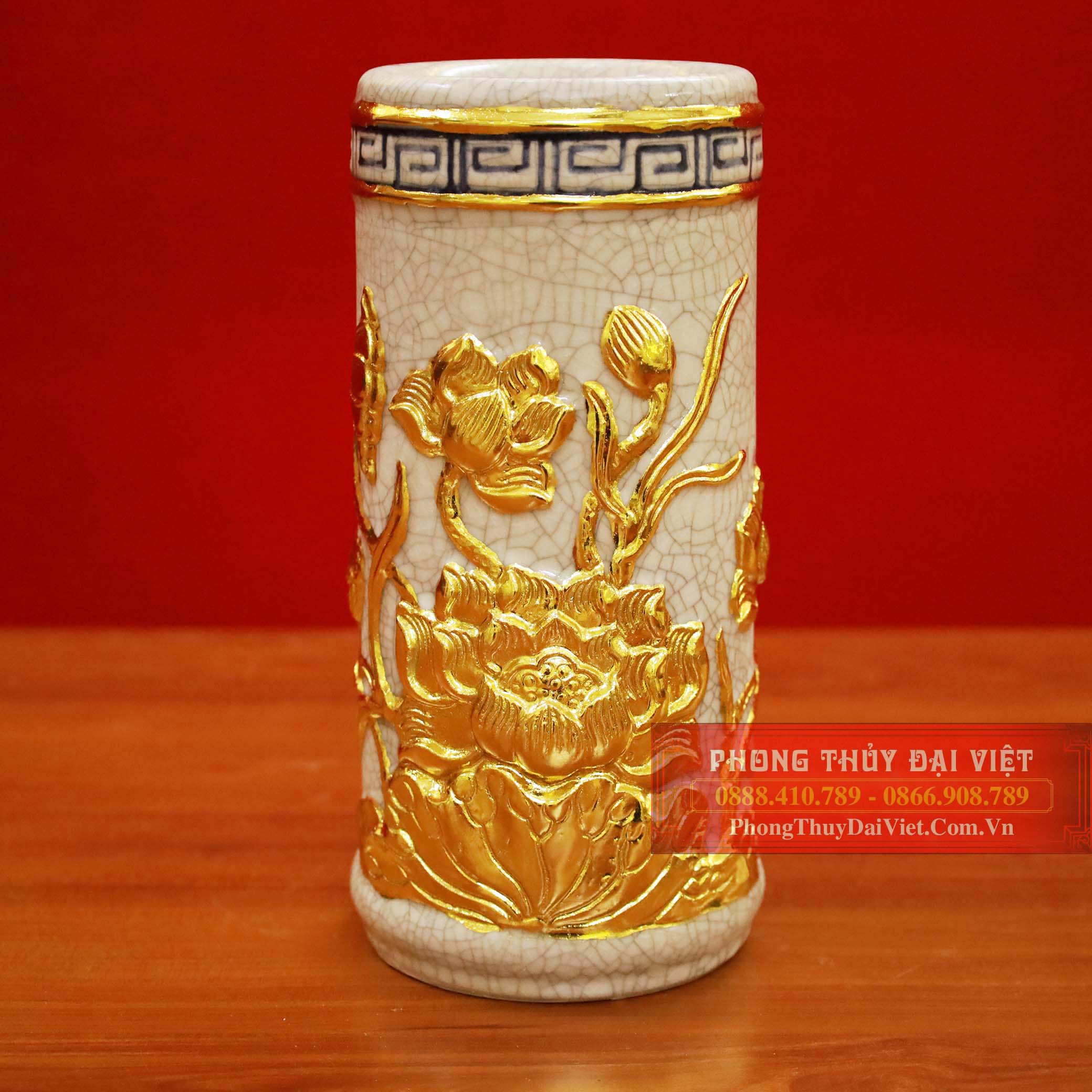 Ống hương men rạn đắp nổi dát vàng: Khi kết hợp chất men rạn đắp nổi với lớp vàng 24k, những mẫu ống hương này trở nên rực rỡ và quý phái. Lớp vàng sáng tạo nên nhấn vào điểm nhấn sang trọng và hoàn thiện, kết hợp với nghệ thuật tạo hình nổi tạo nên một tác phẩm nghệ thuật đẳng cấp.