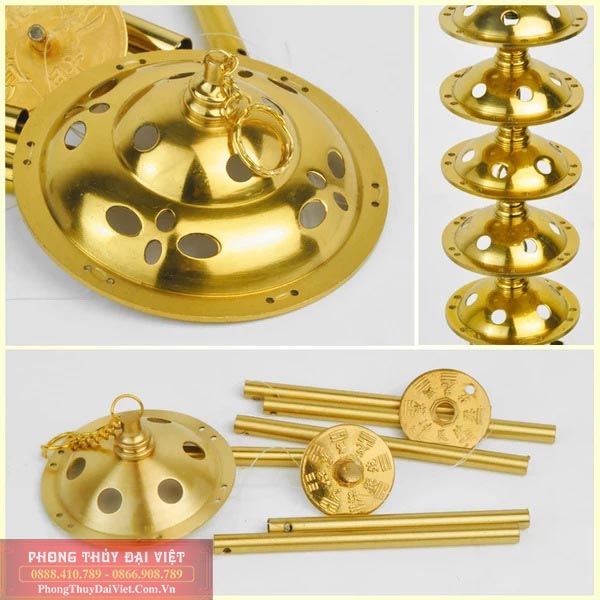 Chuông gió đồng 5 tầng với 6 ống kim loại mang trong mình một ý nghĩa quan trọng trong lĩnh vực phong thủy và tâm linh. Đây không chỉ là một vật trang trí đẹp mắt, mà còn là một công cụ có khả năng hoá giải các khí xấu và tăng cường khí tốt.
