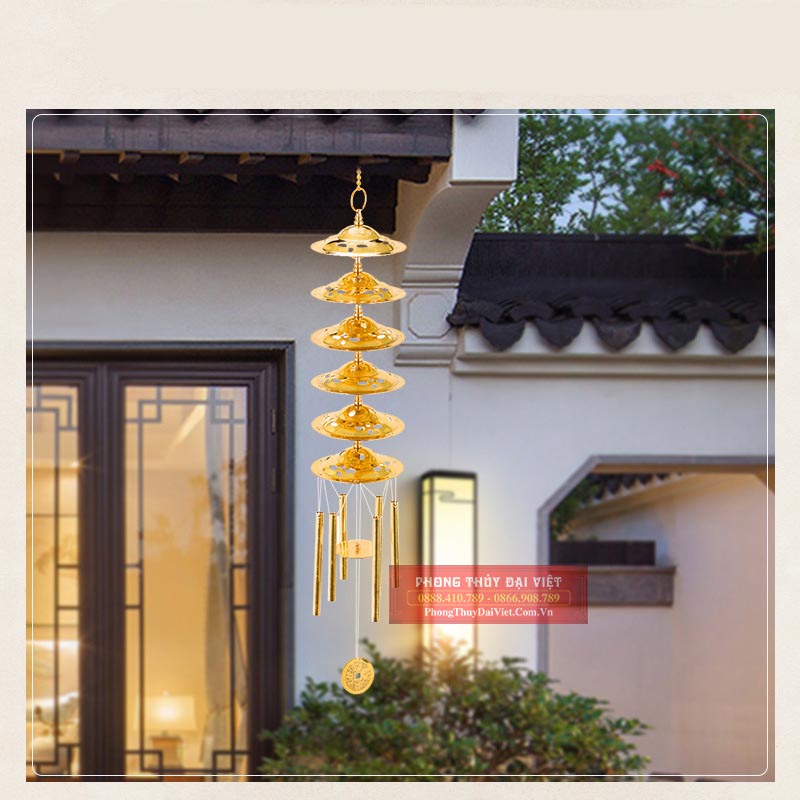 Chuông gió đồng 5 tầng với 6 ống kim loại mang trong mình một ý nghĩa quan trọng trong lĩnh vực phong thủy và tâm linh. Đây không chỉ là một vật trang trí đẹp mắt, mà còn là một công cụ có khả năng hoá giải các khí xấu và tăng cường khí tốt.