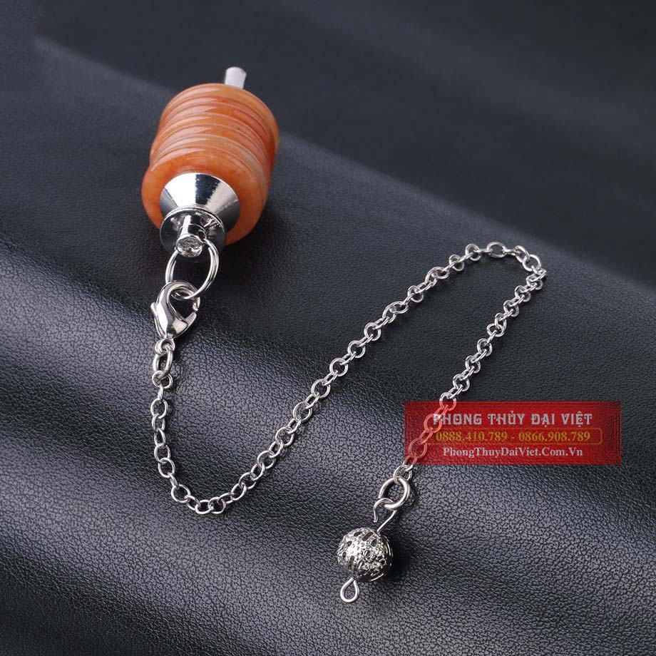 Con lắc được thiết kế 7 tầng chắc chắn, phần dây lắc được đính vào trọng tâm viên đá giúp quá trình đo đựơc chính xác. Con lắc được làm từ đá mặt trời có màu cam rực rỡ, có hiệu ứng ánh kim bắt mắt. Đá được khai thác trong tự nhiên nên mang nguồn năng lượng rất lớn.