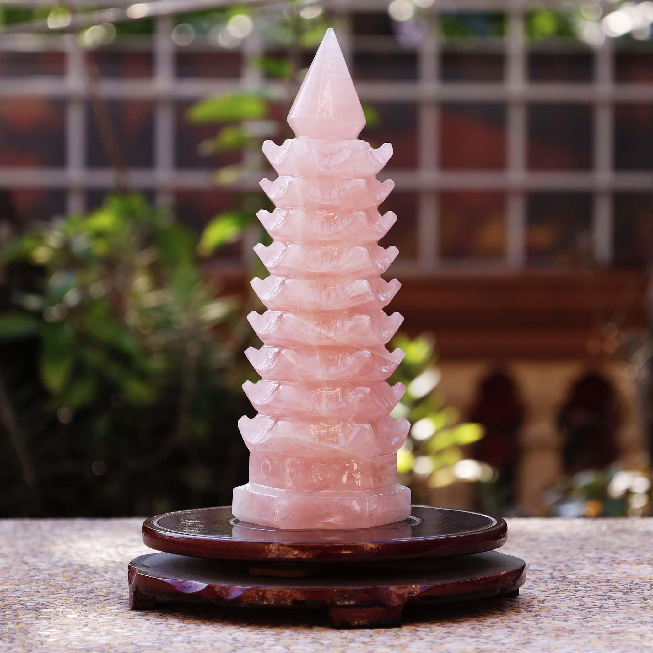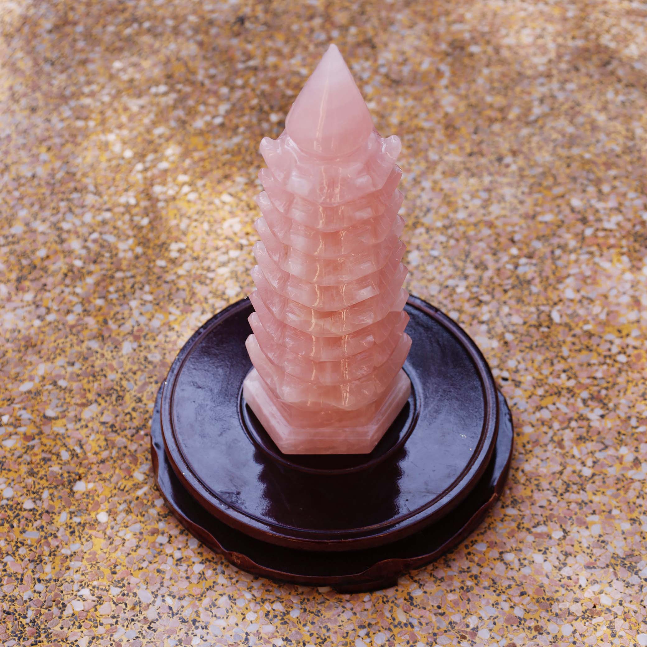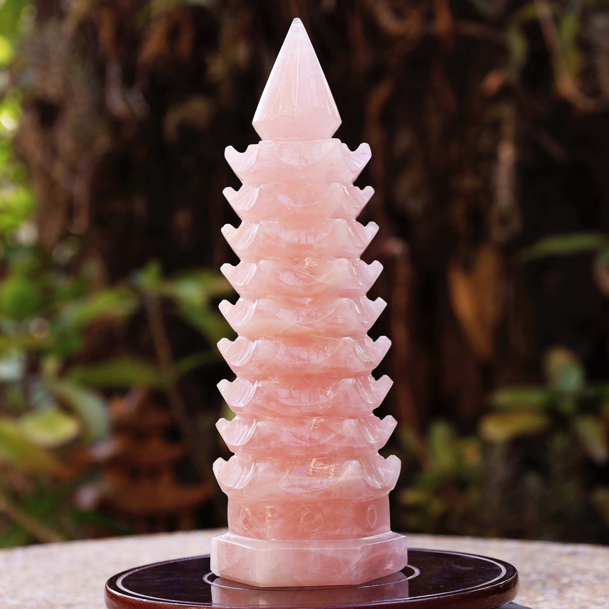 Tên sản phẩm: Tháp văn xương thạch anh hồng 9 tầng 22.5x7cm-1.3kg-DPVN198-4