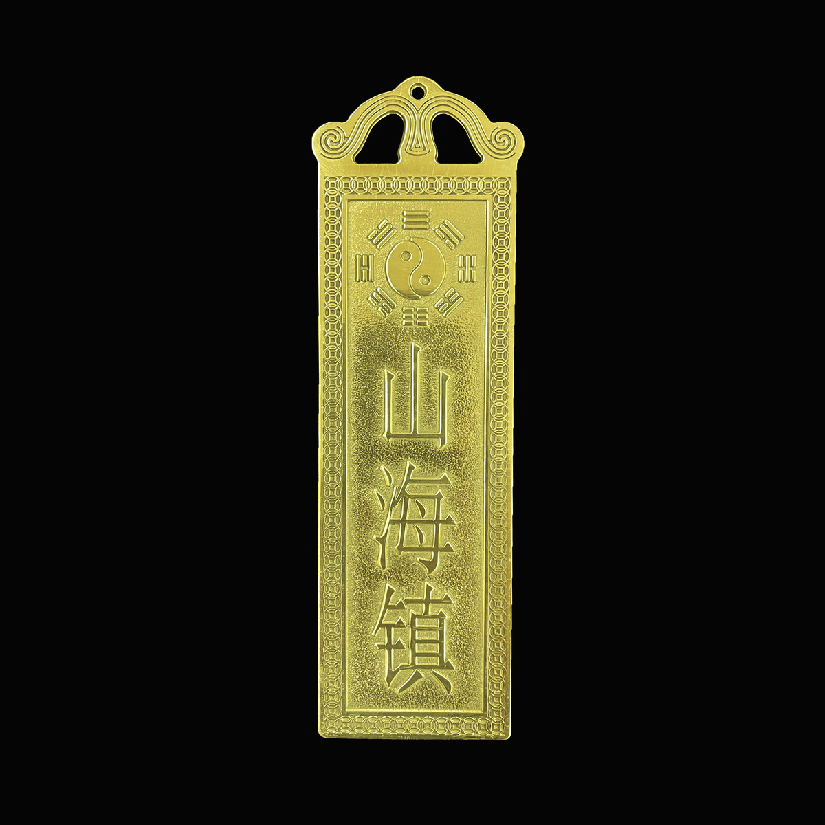 Kim bài sơn hải trấn có thể được treo ở các điểm chiến lược trong nhà như cửa chính hoặc cửa sổ, giúp tạo ra một không gian an lành và bình yên. Sự kết hợp của sắc đồng và tinh tế trong thiết kế tạo ra một vật phẩm phong thủy độc đáo và đẳng cấp.