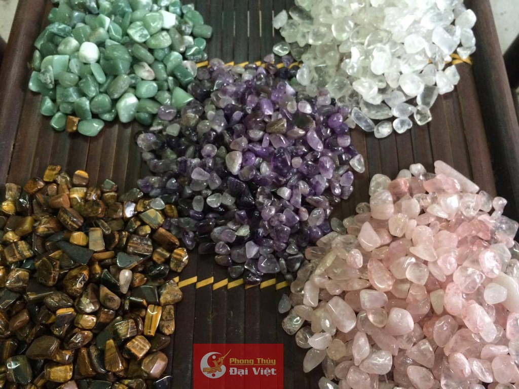 + Ý nghĩa và công dụng của thạch anh vụn ngũ sắc: Thạch anh vụn ngũ sắc Giúp trấn trạch, hóa cát, khử tia đất xấu, làm tăng vượng khí và thu hút tài lộc. Đặc biệt dòng thạch anh vụn ngũ sắc còn được dùng cho việc thờ cúng ...