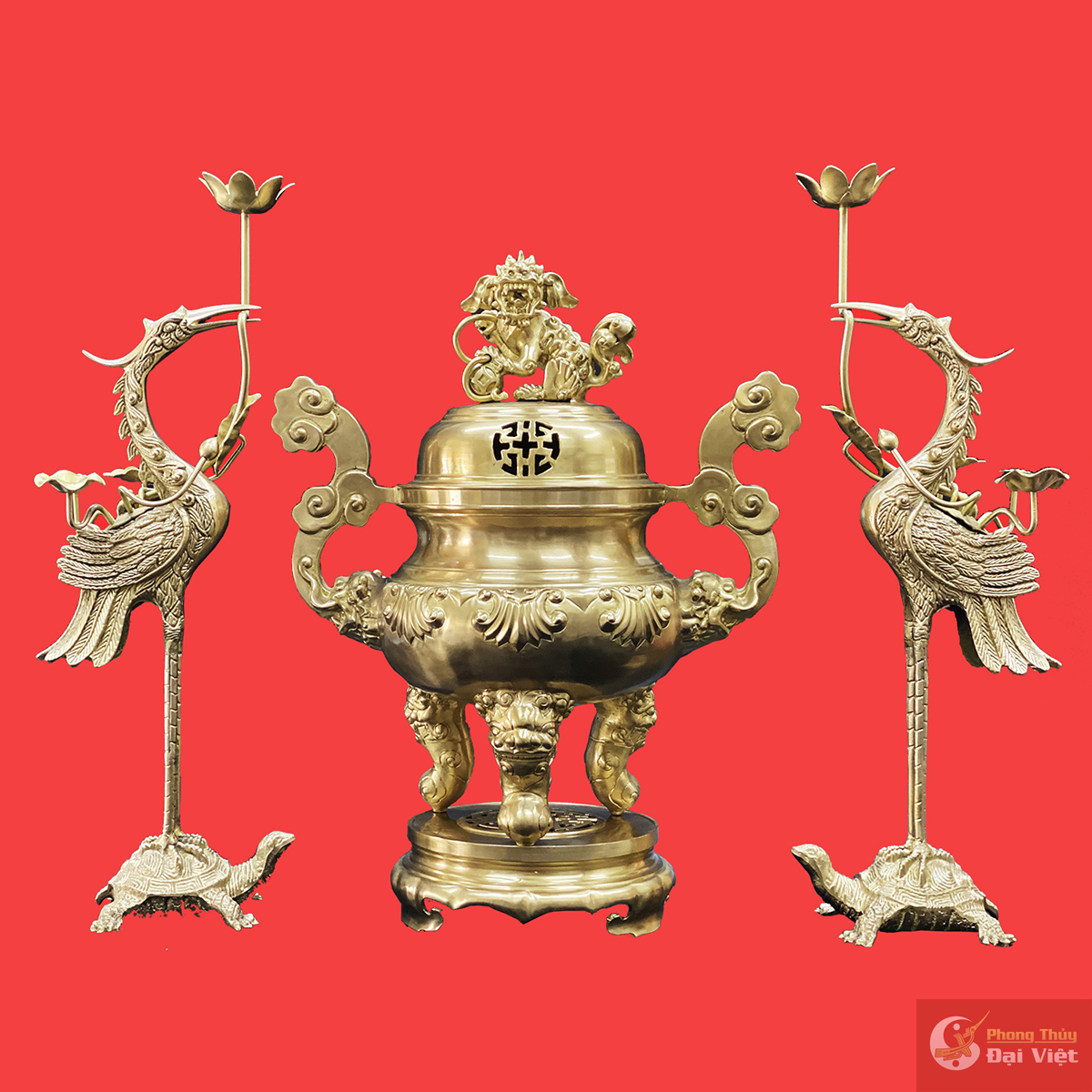 Tại đây, quý khách hàng có thể dễ dàng lựa chọn cho mình được đầy đủ một bộ đồ thờ bằng đồng gồm: Đỉnh đồng (lư hương đồng), hạc, chân nến, đèn, lọ hoa, ống đựng hương, bộ ba đài thờ, mâm bồng, khay ba chén nước, bát hương,… được làm từ các loại đồng nguyên chất như: Đồng 2 màu, đồng mộc, đồng vàng đậm,…