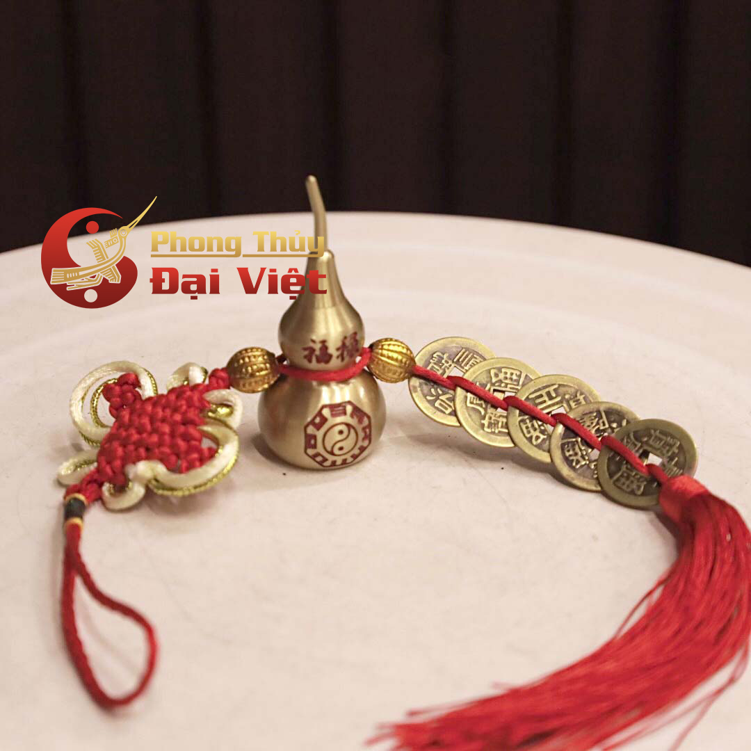 Sự kết hợp giữa hồ lô và xu ngũ đế mang lại may mắn, tài lộc, bình an cho gia chủ.