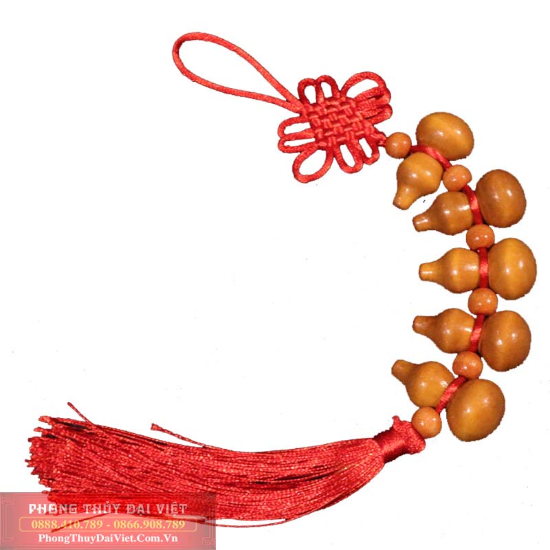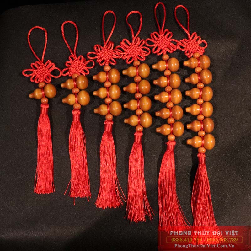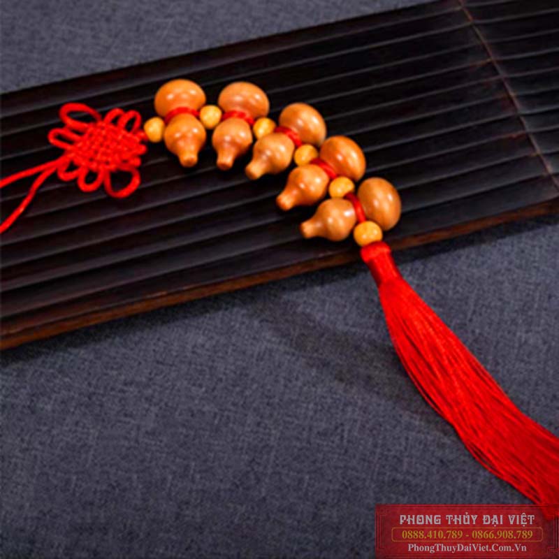 Bộ sản phẩm gồm: 1 dây treo kết đồng tâm đỏ, 5 quả hồ lô, 6 hạt xâu