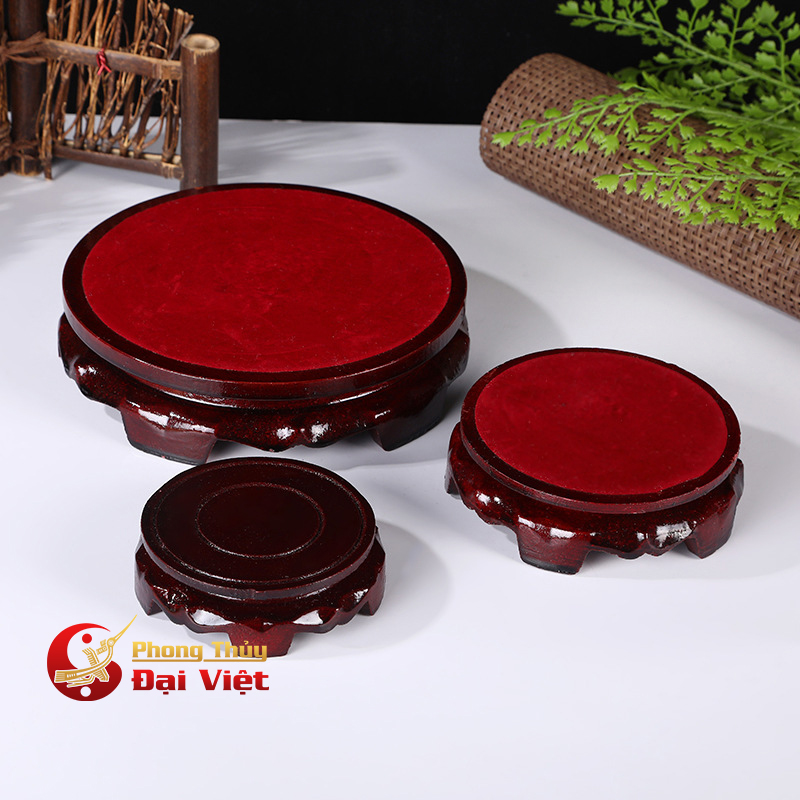 - Đế gỗ tròn lót nhung đỏ với bề mặt mịn màng, lấp lánh và sang trọng. Nó có khả năng làm nổi bật bất kỳ vật phẩm trưng bày nào được đặt lên trên đó. Điều này tạo ra một điểm nhấn quan trọng trong trang trí nội thất, giúp tạo nên sự cuốn hút và thẩm mỹ cho không gian.