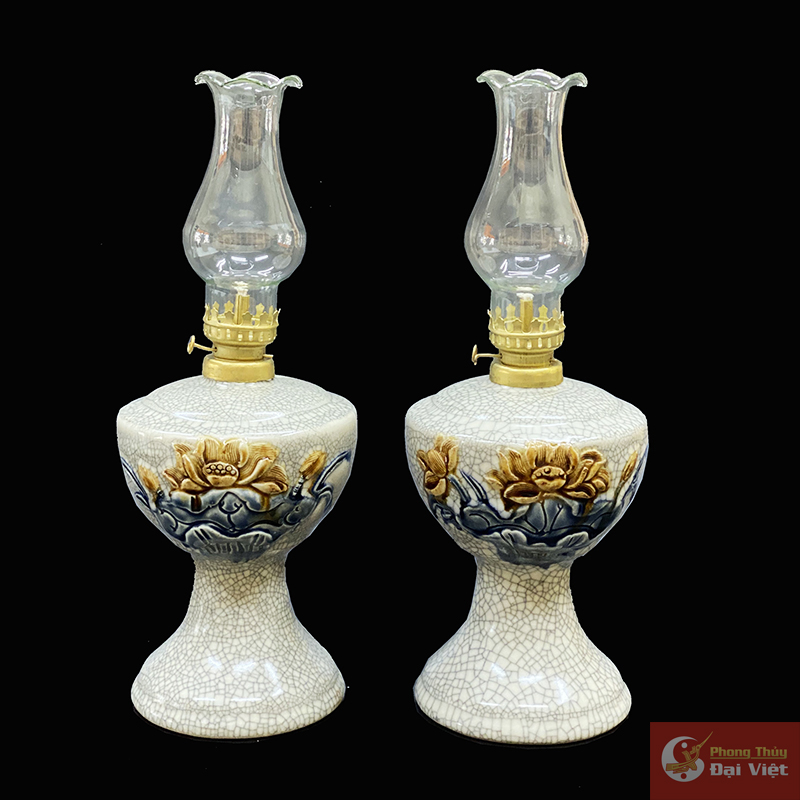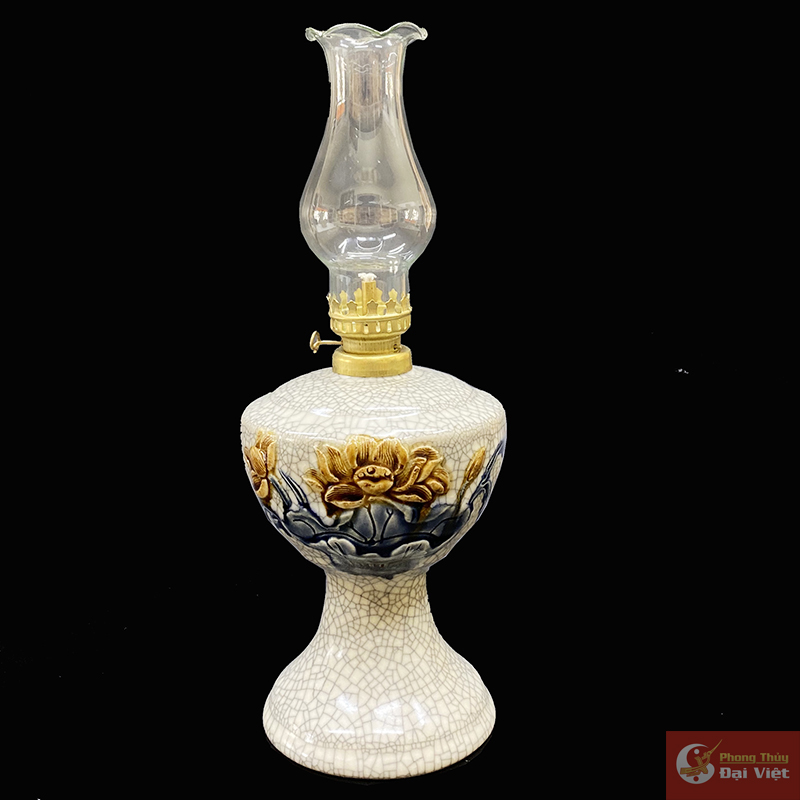 Đèn dầu men rạn Bát Tràng cao cấp vẽ sen