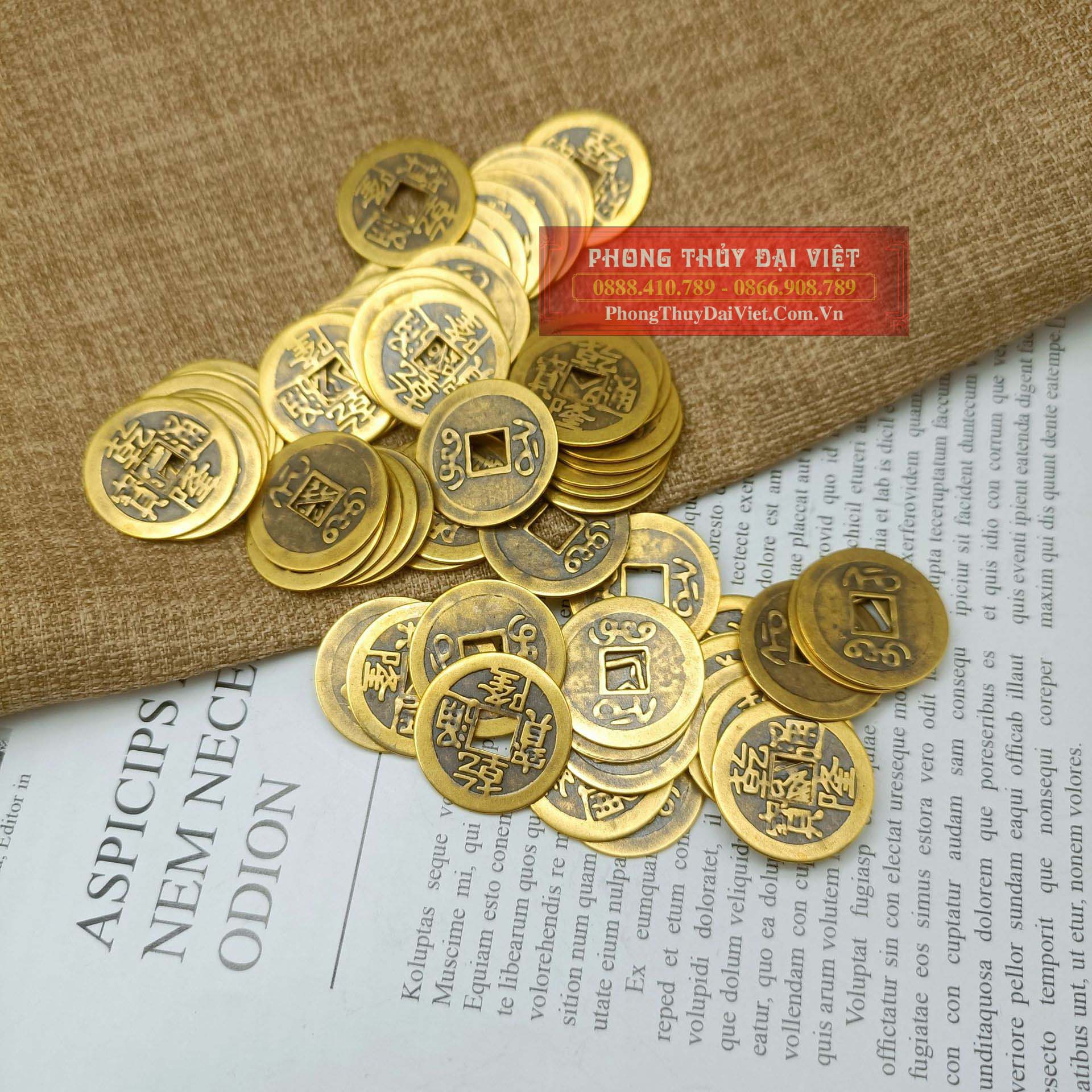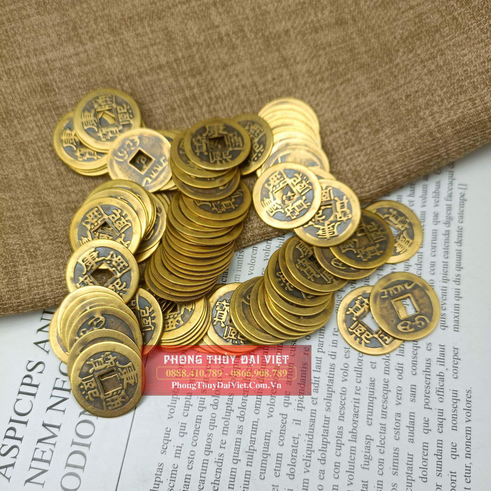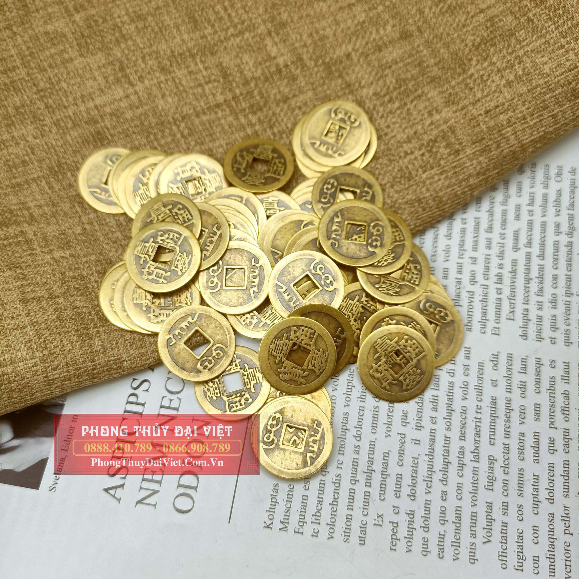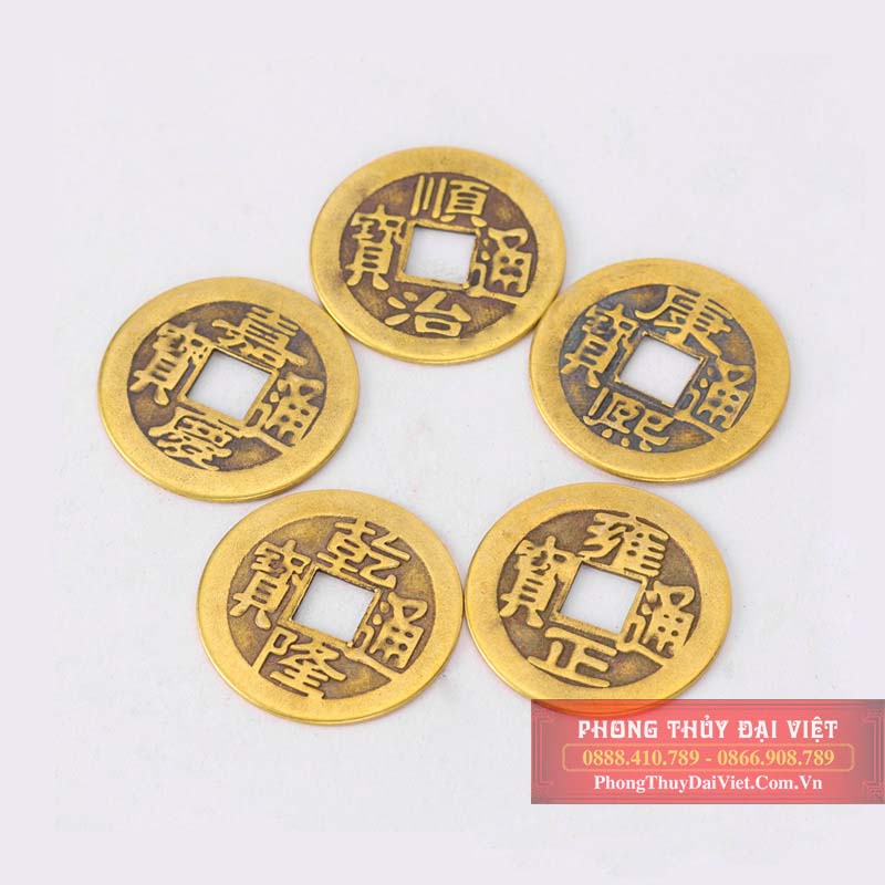 Ngày xưa, người ta dùng tiền xu đục lỗ hình tròn tượng trưng cho trời, giữa là lỗ hình vuông tượng trưng cho đất. Trời ngoài đất trong tượng trưng cho quẻ Thái tức sự thịnh vượng. Tùy theo niên hiệu các đời vua mà trên tiền xu có khắc chữ khác nhau. Tiền xu cổ luôn là một pháp khí sử dụng rất nhiều trong Phong Thủy. Những đồng tiền xu là biểu tượng của nguồn tài lộc và của cải. Cát khí của nó không những làm gia tăng tài lộc mà con đem lại nhiều may mắn về công danh, sự nghiệp và giải trừ tai họa, tiểu nhân… Vì thế phép trấn yểm không thể thiếu tiền xu Phong Thủy.