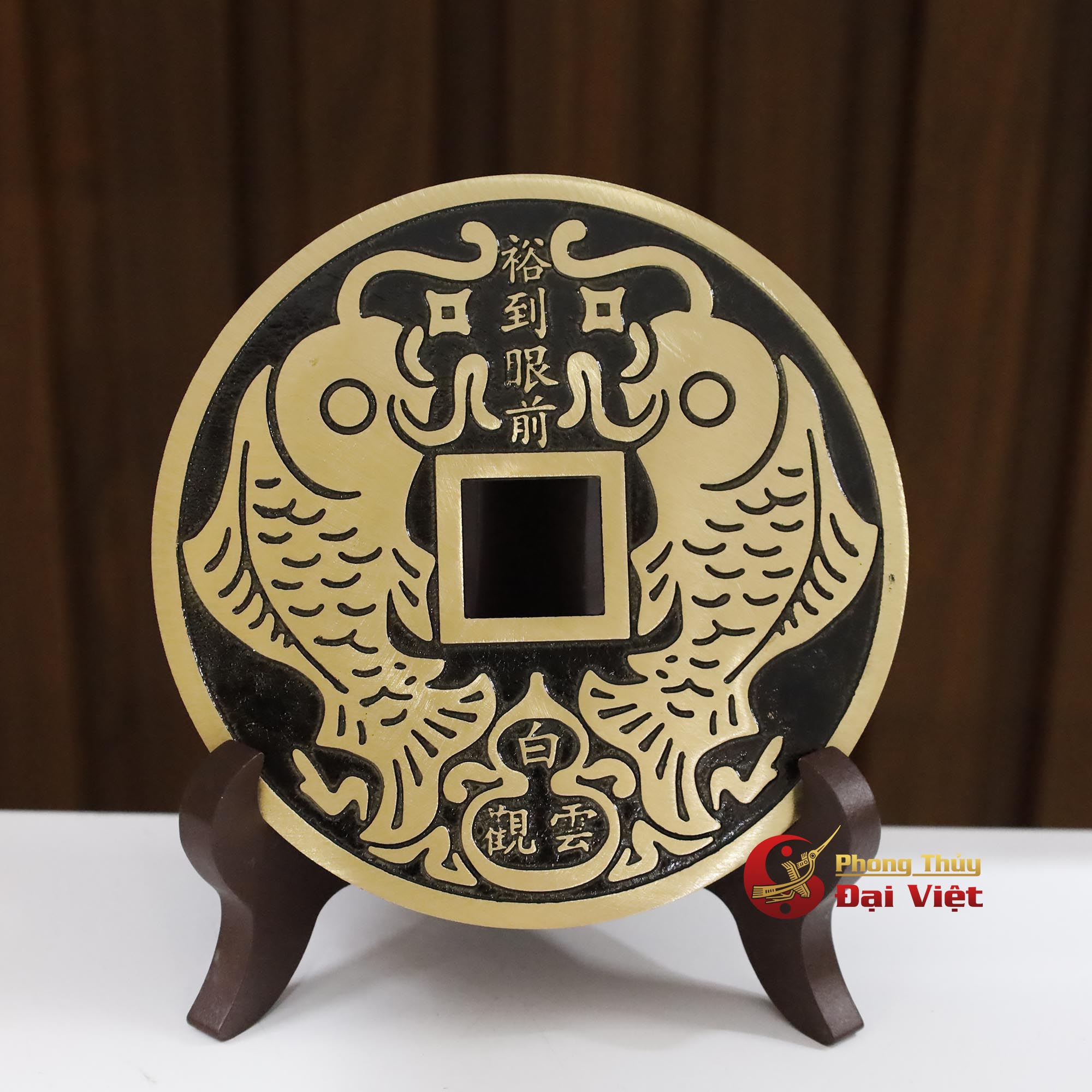 Đồng Xu Chiêu Tài Song Ngư Đồng Nguyên Chất 15cm-200g