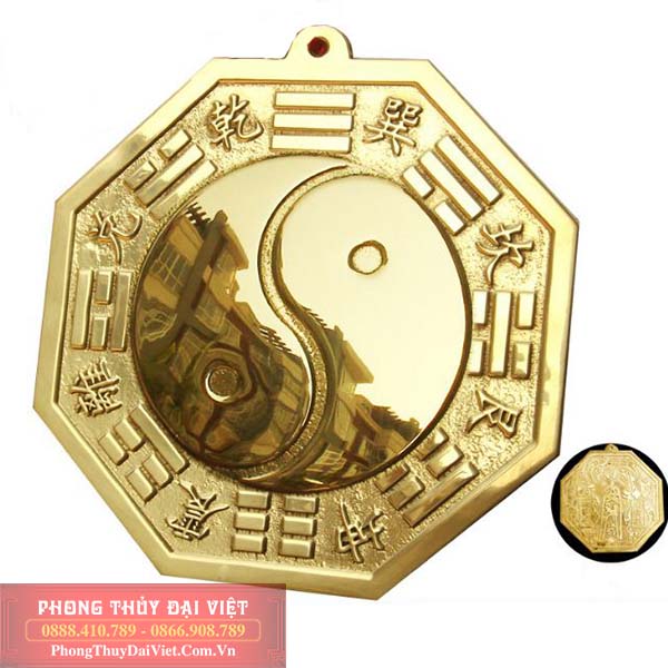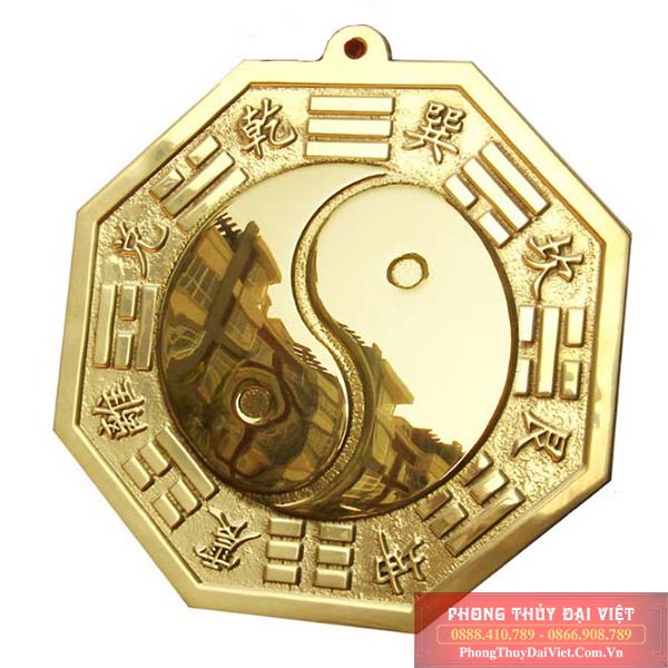 Gương có hình bát giác. Mặt trước ở giữa là gương bát quái lồi