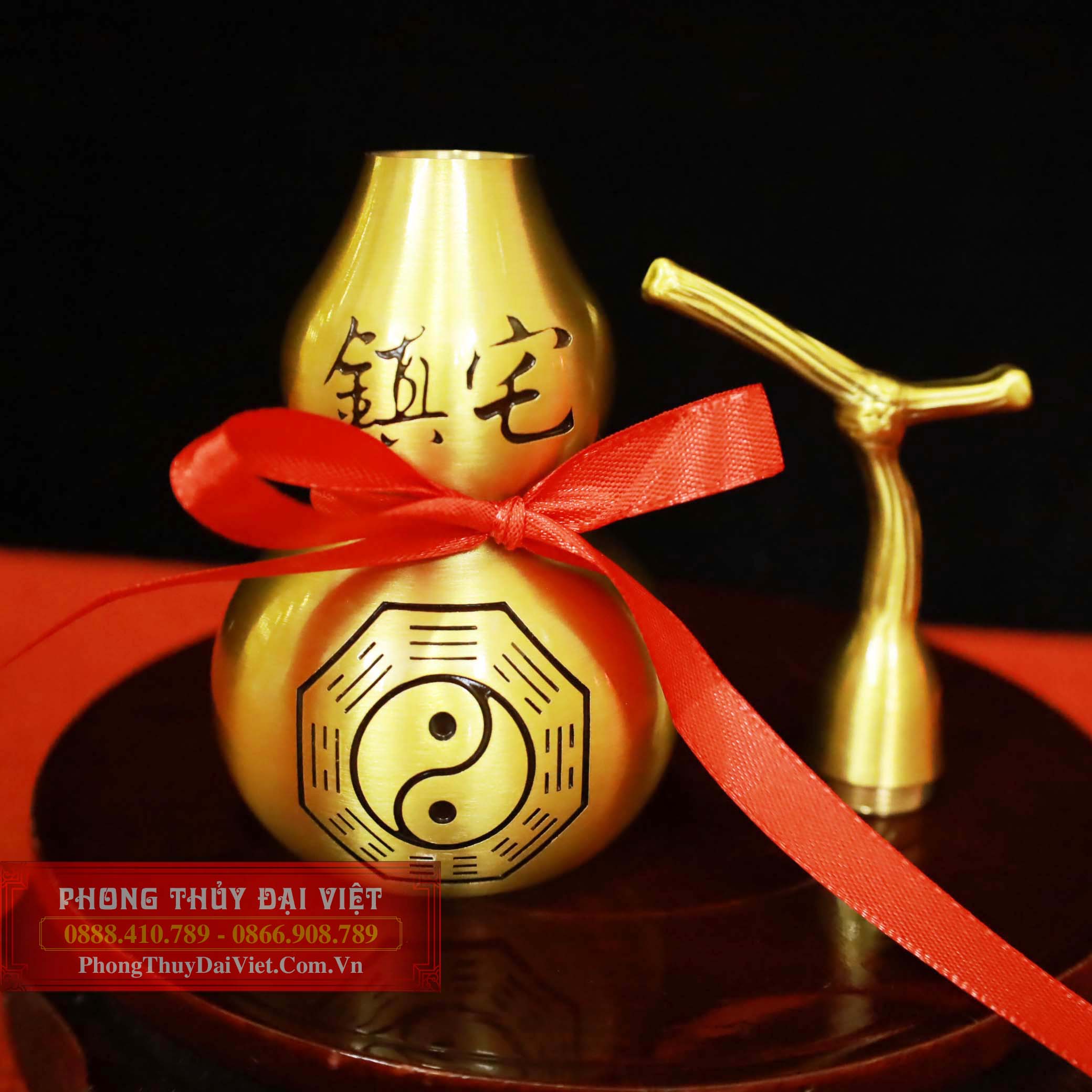 Vật phẩm phong thuỷ có hình hồ lô bằng đồng là một trong những biểu tượng phong thuỷ phổ biến trong nền văn hóa Việt Nam. Hồ lô là một hình dạng đặc biệt, phần trên nhỏ, phần dưới phình to, bên trong rỗng và có thể mở nắp để nạp cốt. Trên bề mặt được khắc nổi hoa văn bát quái.