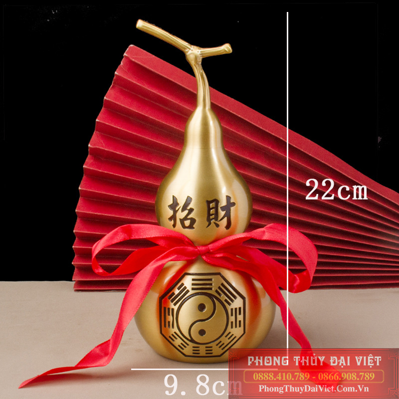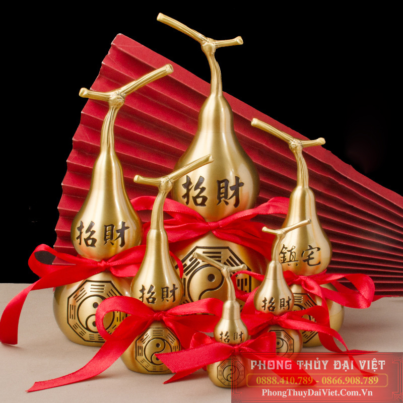 Mang Phúc Tài Vẹn Toàn: Hồ lô đồng được liên kết với hình ảnh Bồ Tát Quan Âm, tượng trưng cho sự may mắn, tài lộc và hạnh phúc toàn diện cho gia chủ.