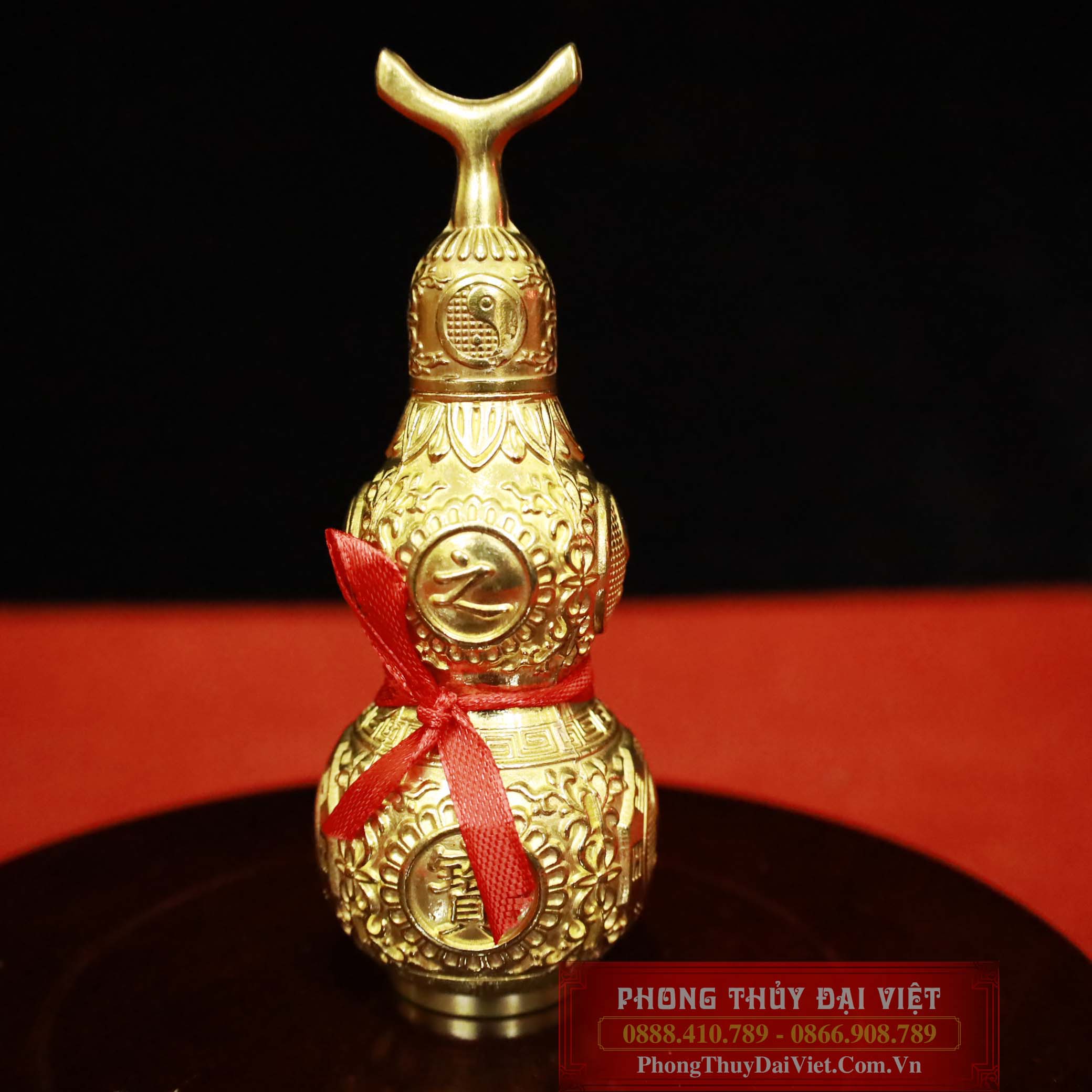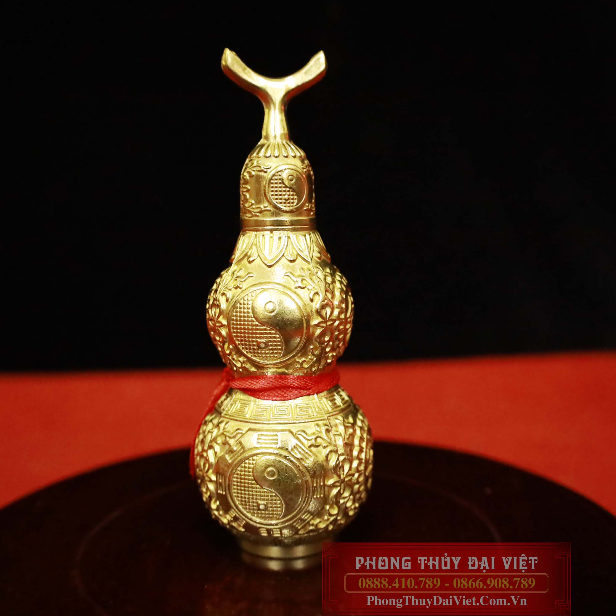 Hồ lô với hoa văn bát quái này mang đến một diện mạo cao quý, với các họa tiết có ánh kim đồng vàng. Sự kết hợp màu sắc trên sản phẩm tạo ra một sắc thái thực sự hài hòa.