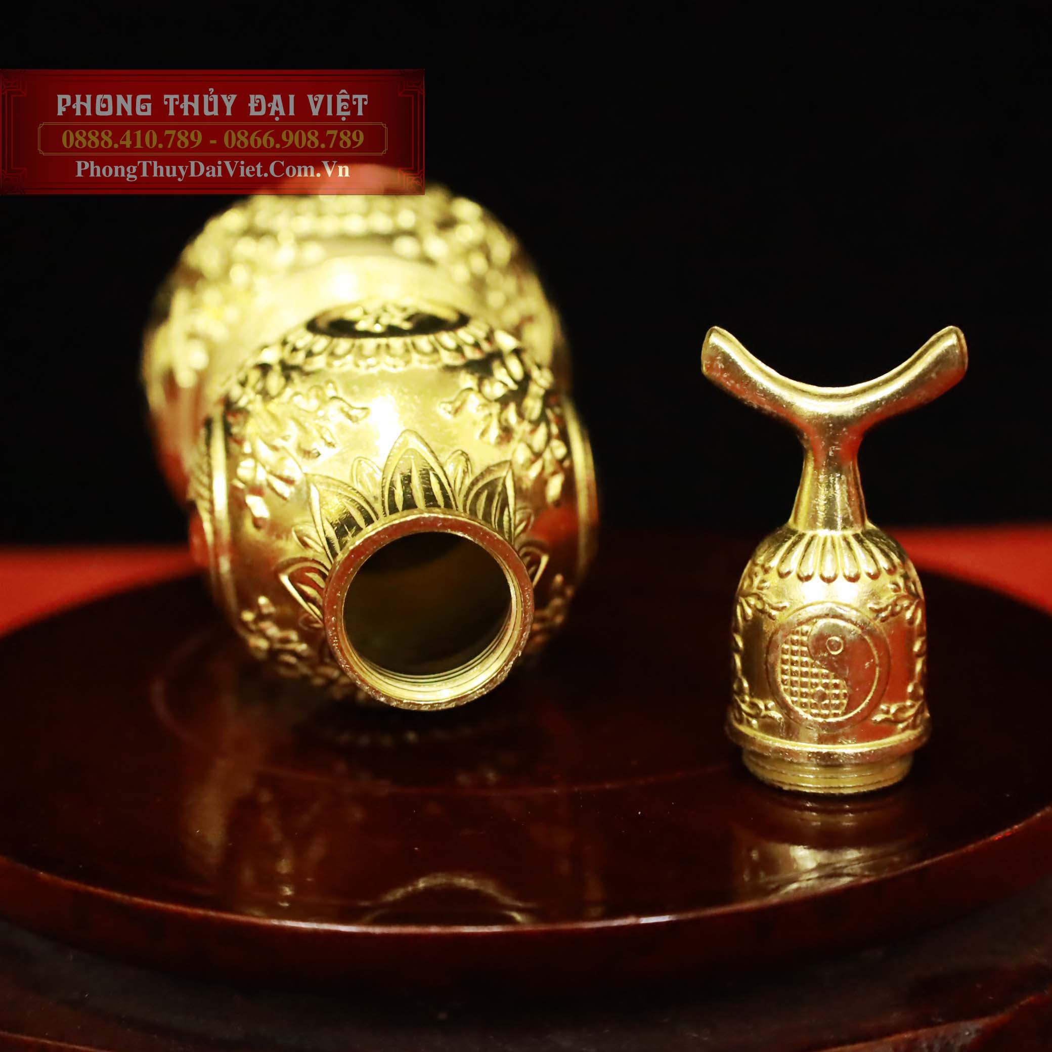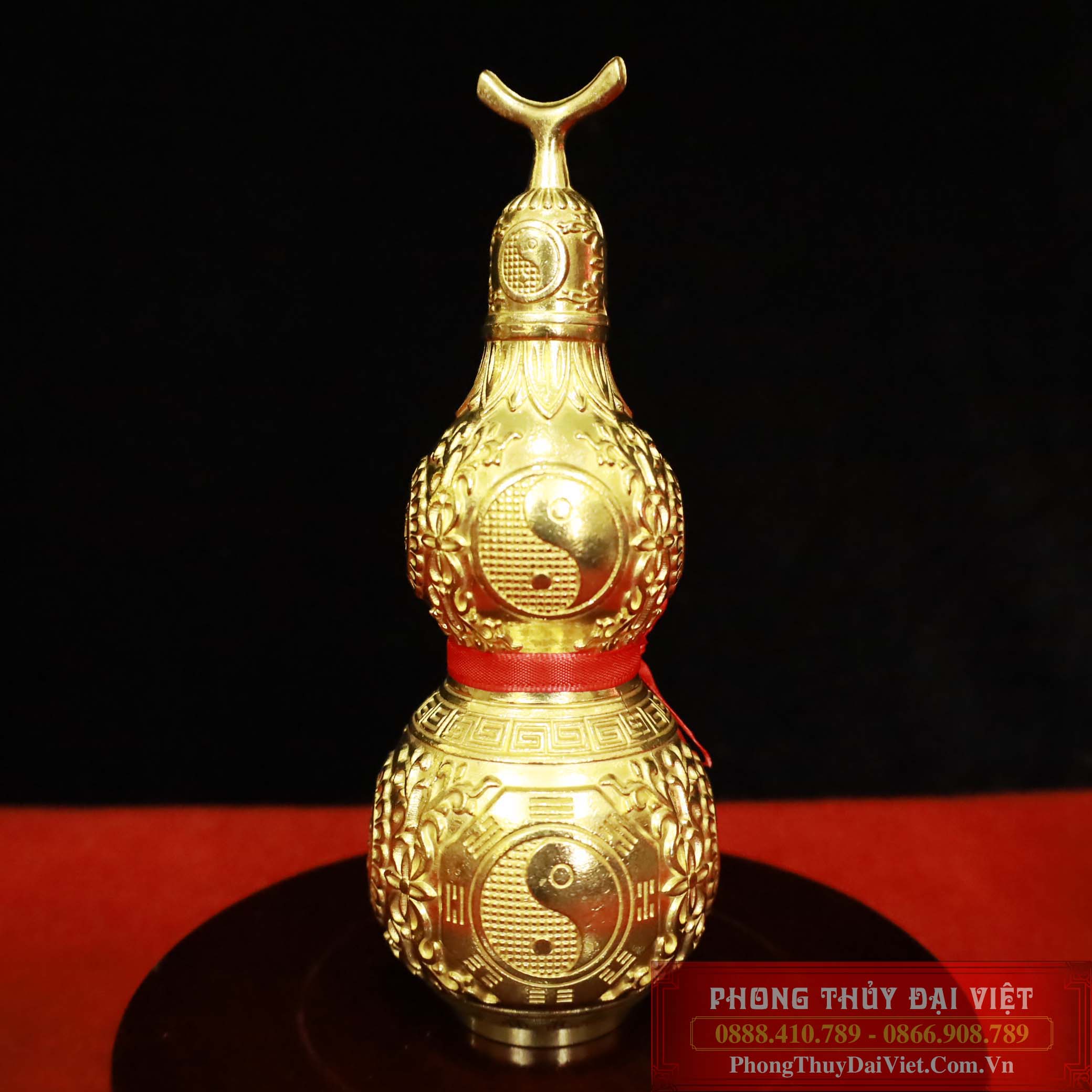 Hồ lô với hoa văn bát quái này mang đến một diện mạo cao quý, với các họa tiết có ánh kim đồng vàng. Sự kết hợp màu sắc trên sản phẩm tạo ra một sắc thái thực sự hài hòa.