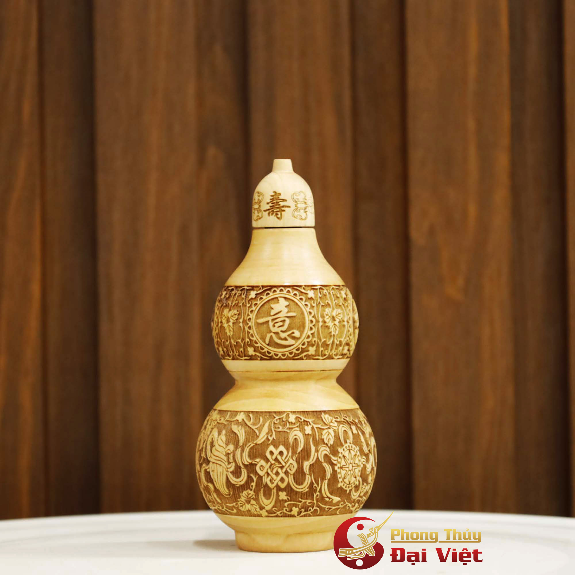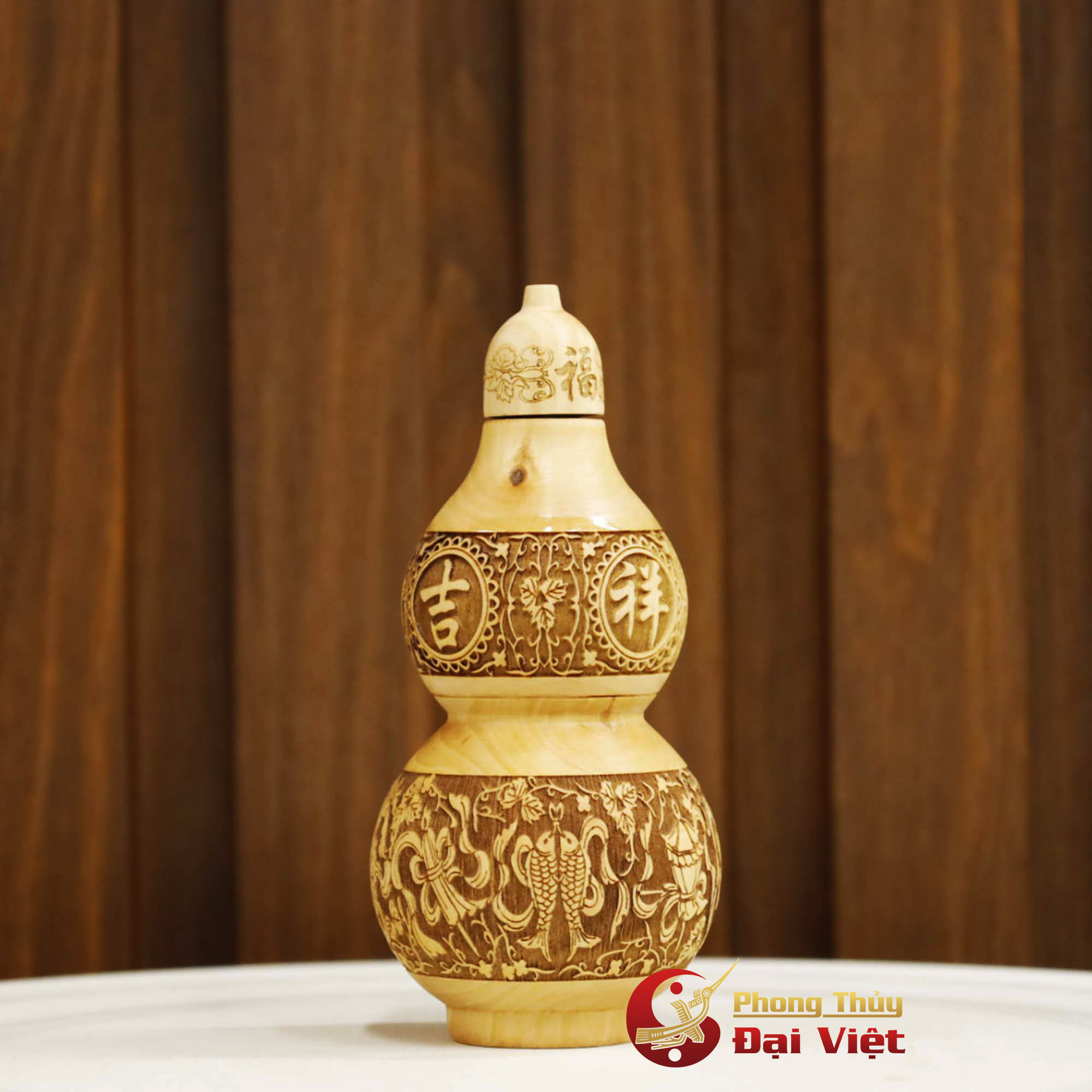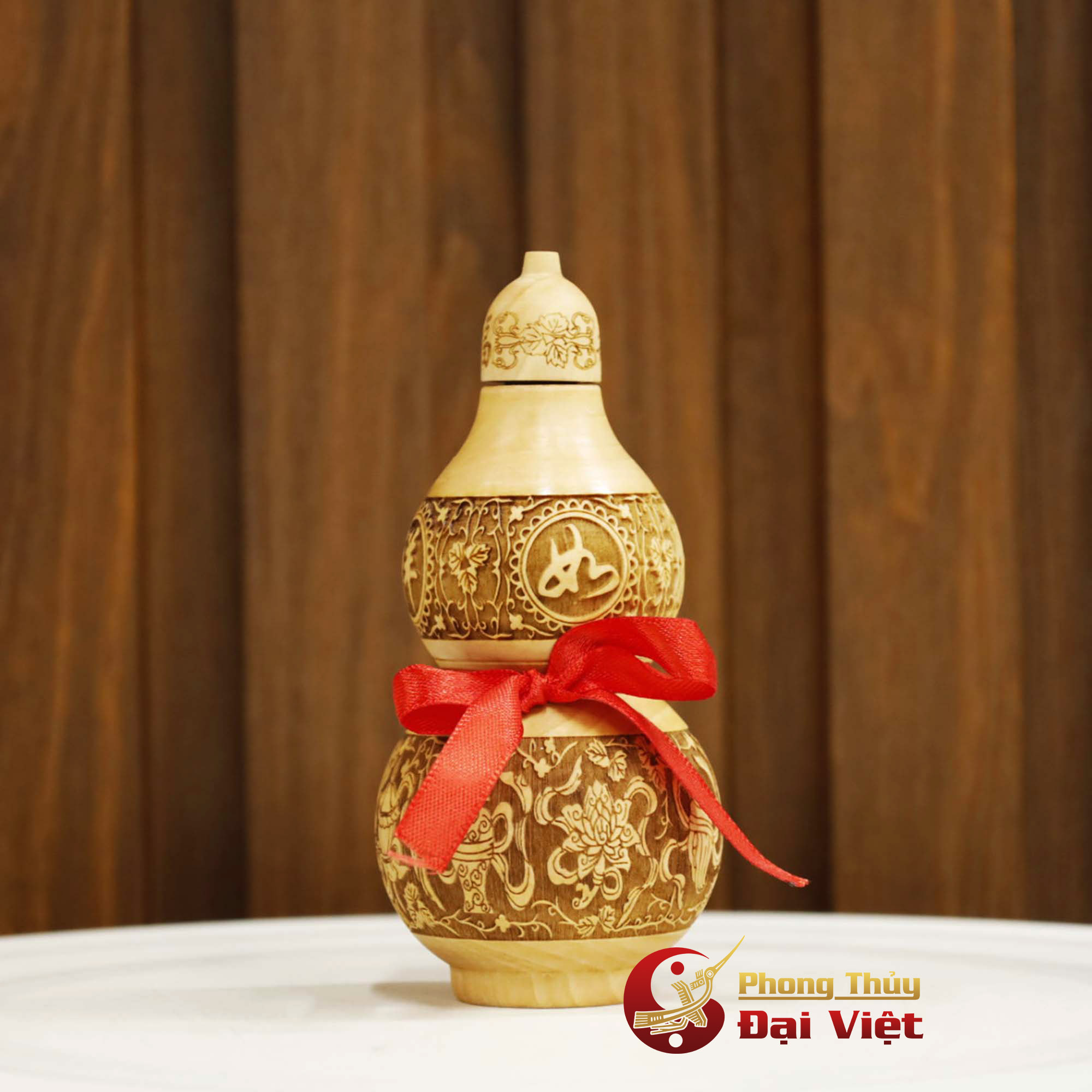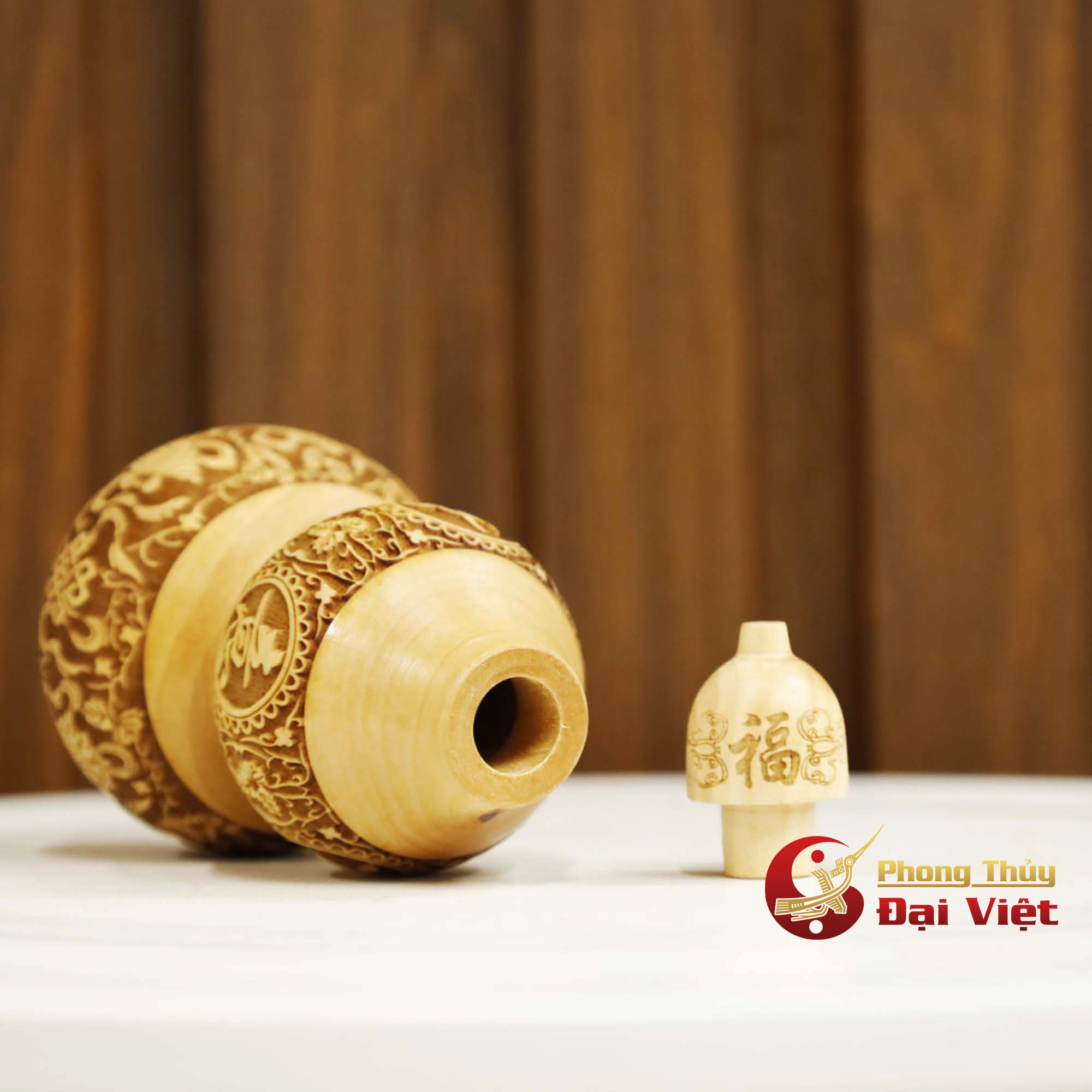 Hồ Lô Gỗ Đào Chiêu Tài 14cm
