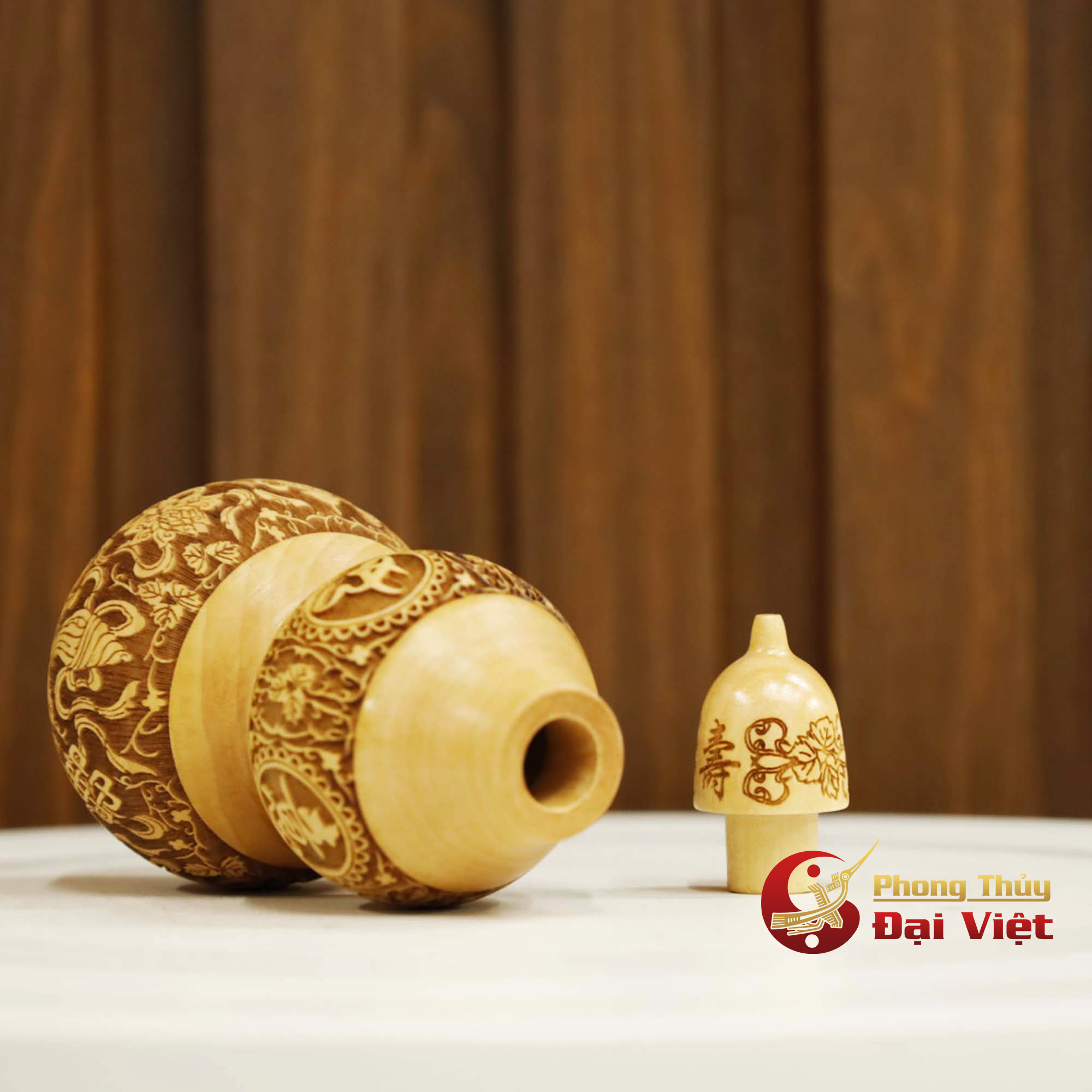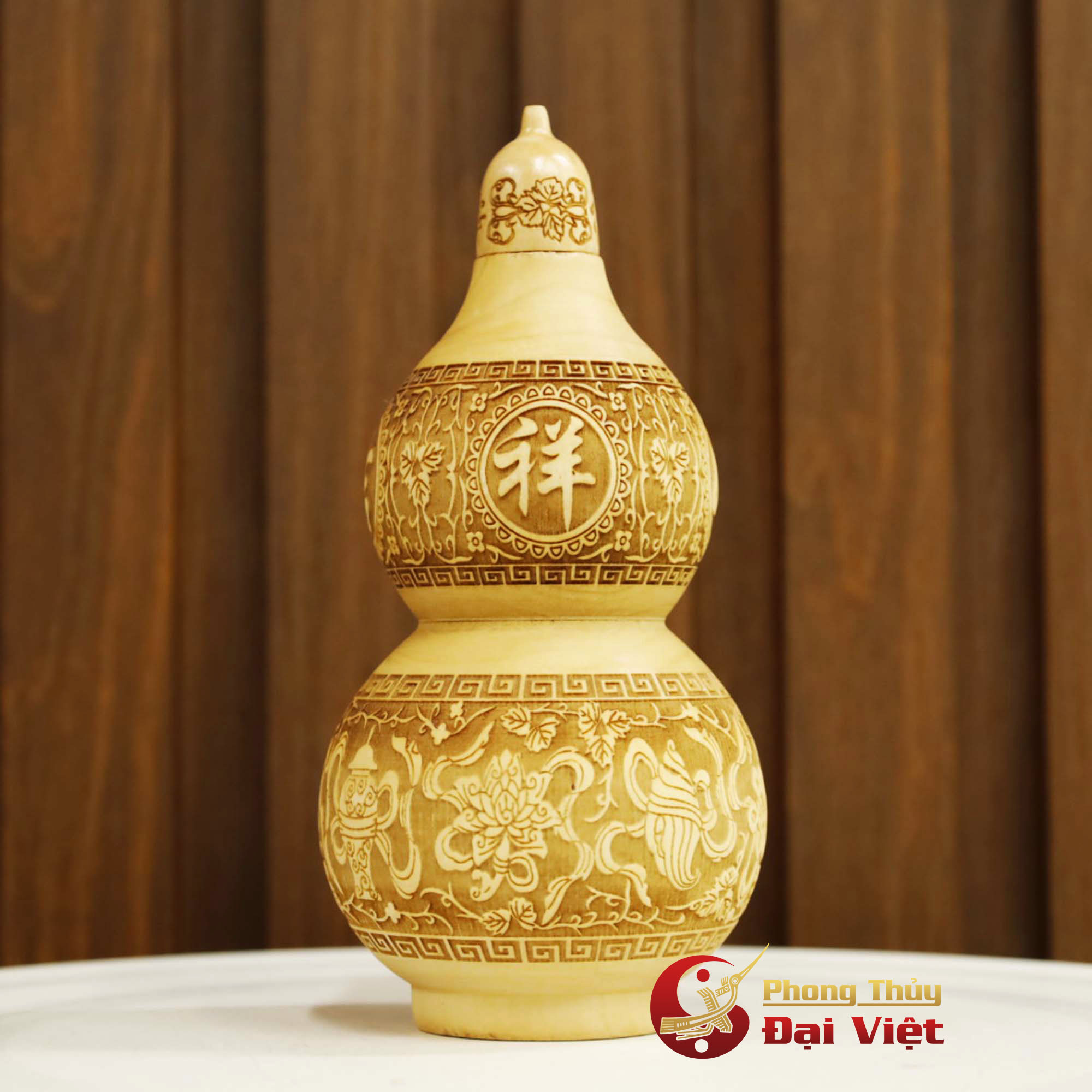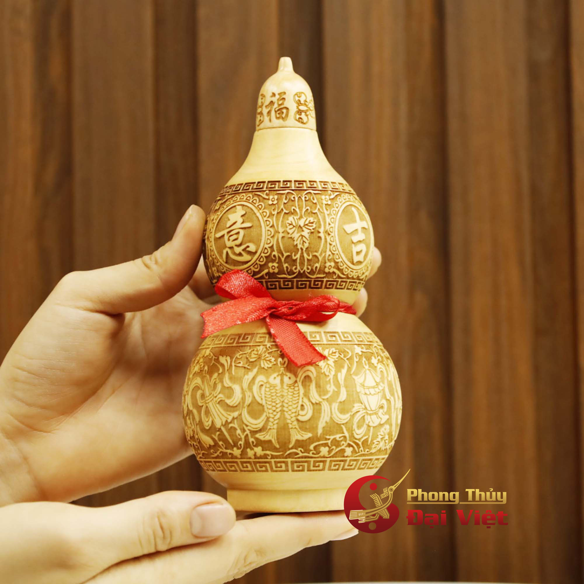 Hồ Lô Gỗ Đào Chiêu Tài 18cm