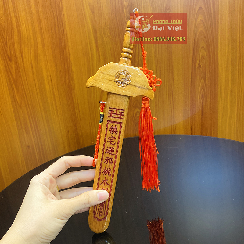+ Công dụng và cách sử dụng: Kiếm gỗ đào được dùng để hoá giải sát khí, trừ tà ( vì được làm từ loại gỗ đào tự nhiên chuyên dụng trong việc trừ tà ma ) . Ngoài ra, Kiếm gỗ đào còn là vật phẩm phong thuỷ cực hiệu quả trong việc trấn áp âm khí, cắt kiếp đào hoa cho người đào hoa.