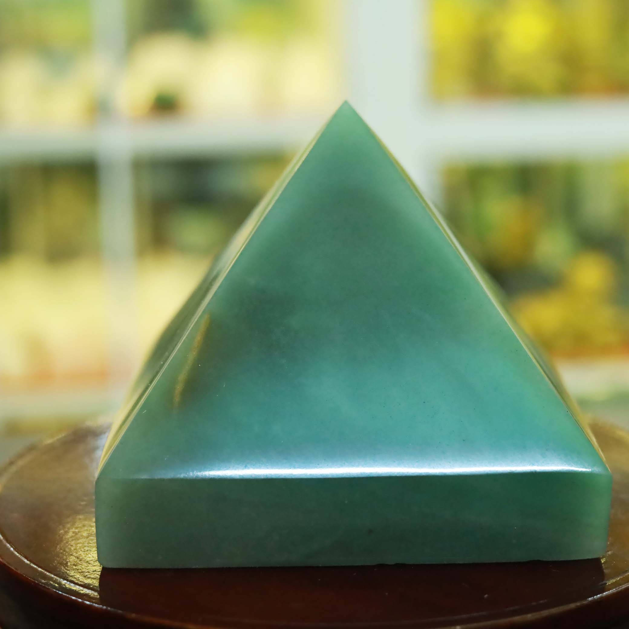 Sự kết hợp giữ kim thự tháp và thạch anh xanh tạo nên một vật phẩm phong thuỷ tuyệt vời, giúp cải thiện sức khoẻ, mang lại may mắn, bình an cho gia chủ. Đặc biệt, vật phẩm này còn có khả năng chiêu tài, cầu lộc.