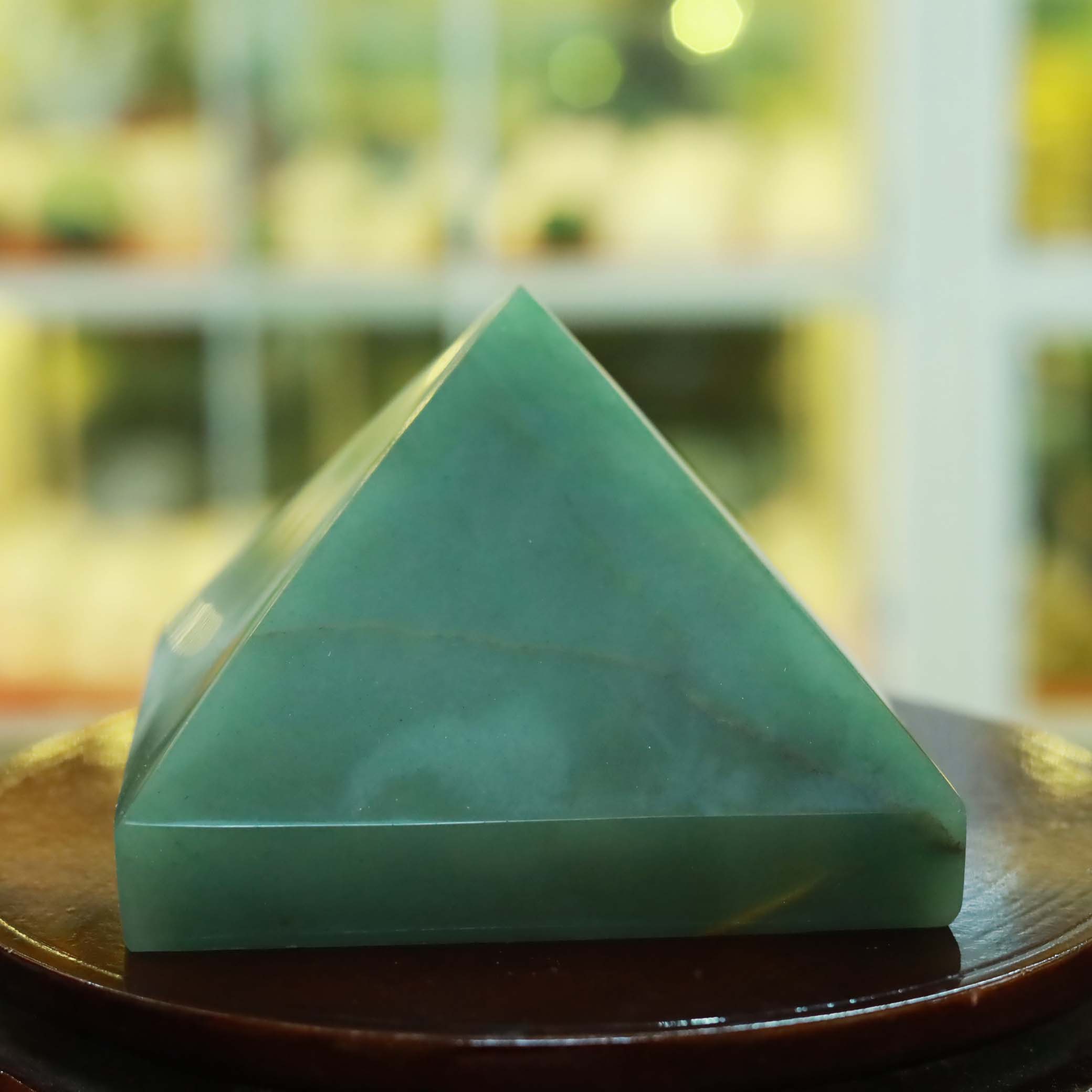 Sự kết hợp giữ kim thự tháp và thạch anh xanh tạo nên một vật phẩm phong thuỷ tuyệt vời, giúp cải thiện sức khoẻ, mang lại may mắn, bình an cho gia chủ. Đặc biệt, vật phẩm này còn có khả năng chiêu tài, cầu lộc.