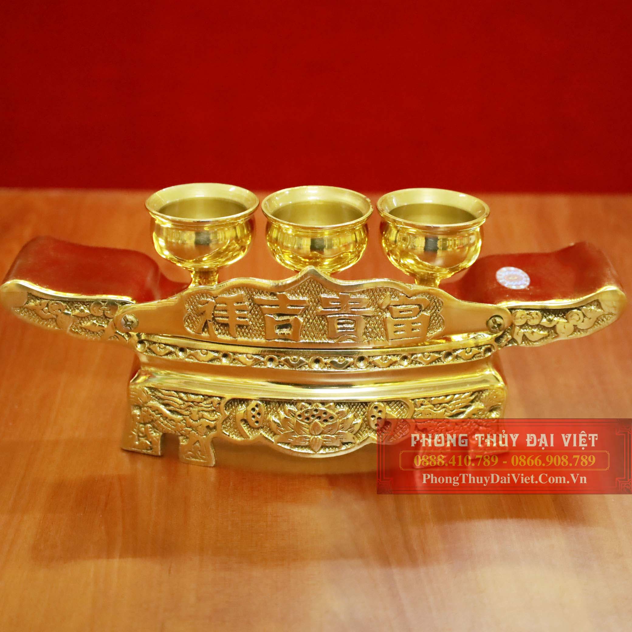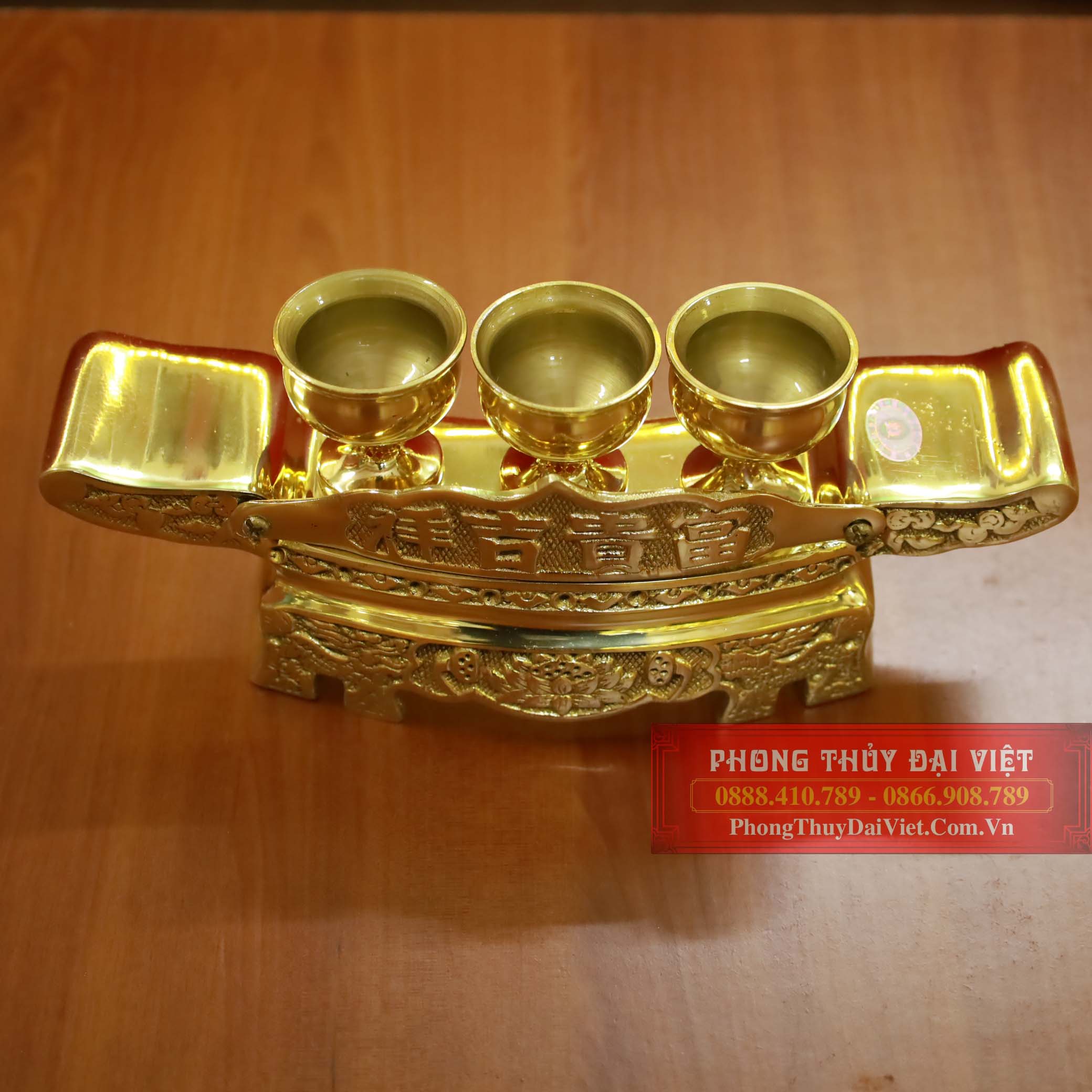 Kỷ ngai 3 chén đồng vàng bóng