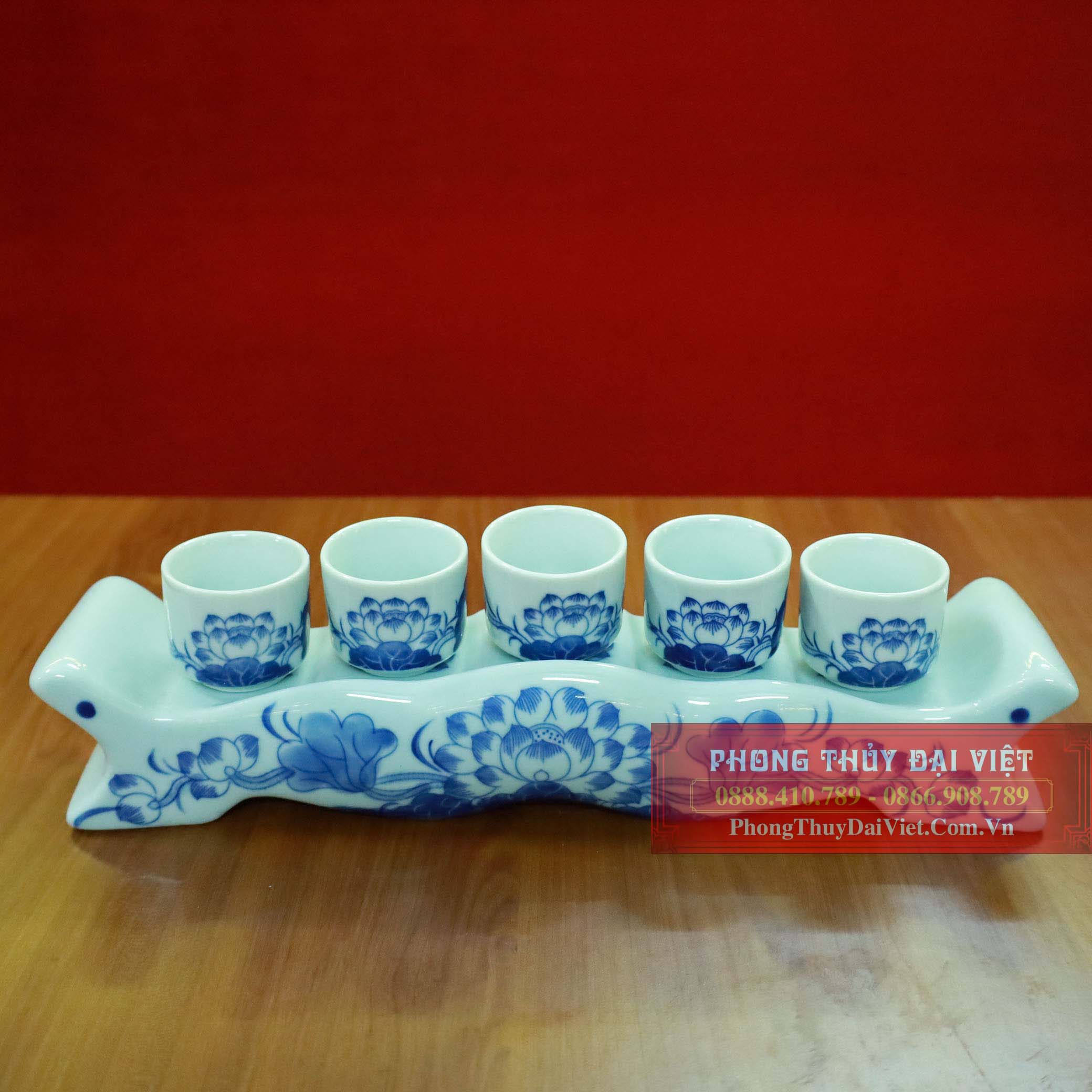 Bộ kỷ ngai 5 chén men ngọc Bát tràng
