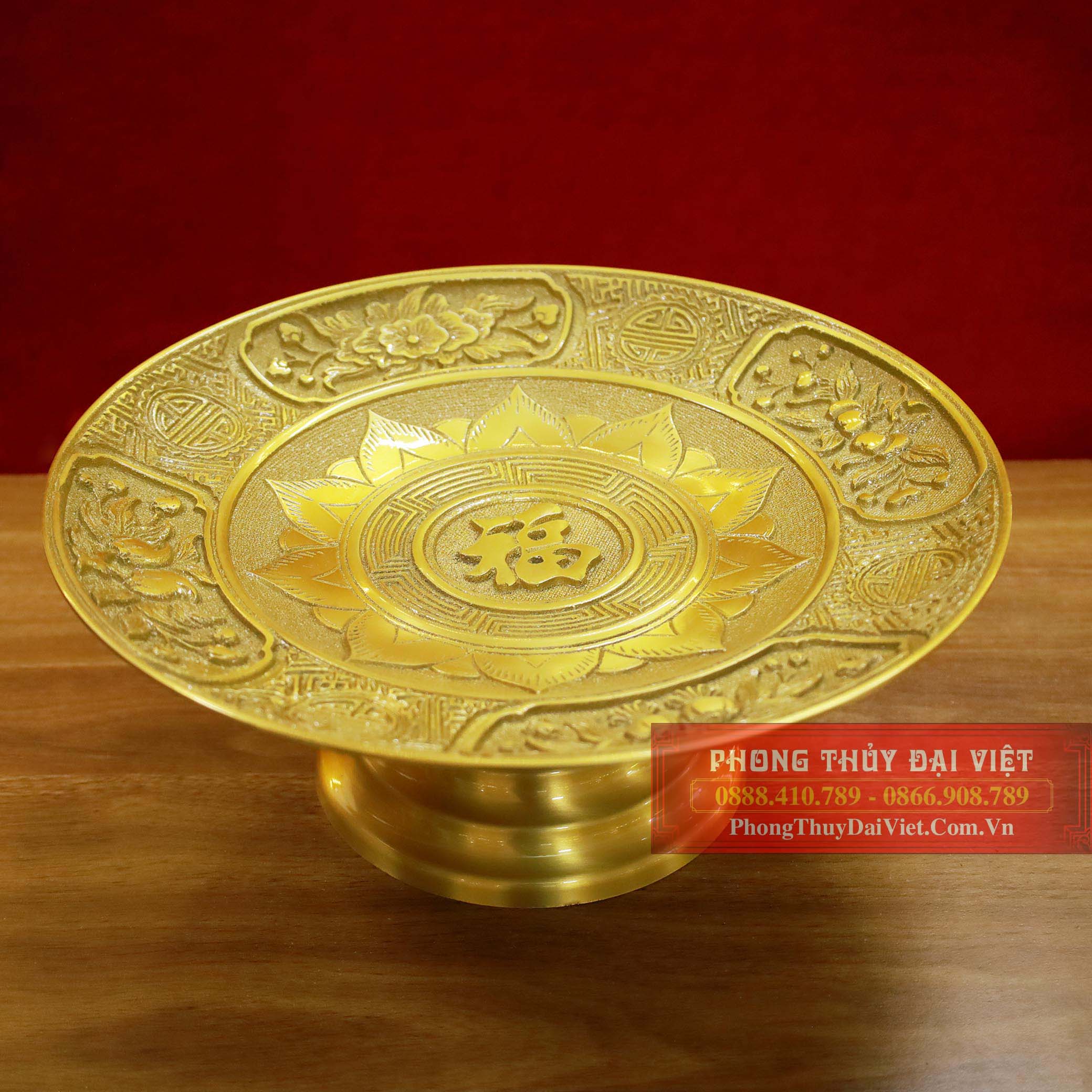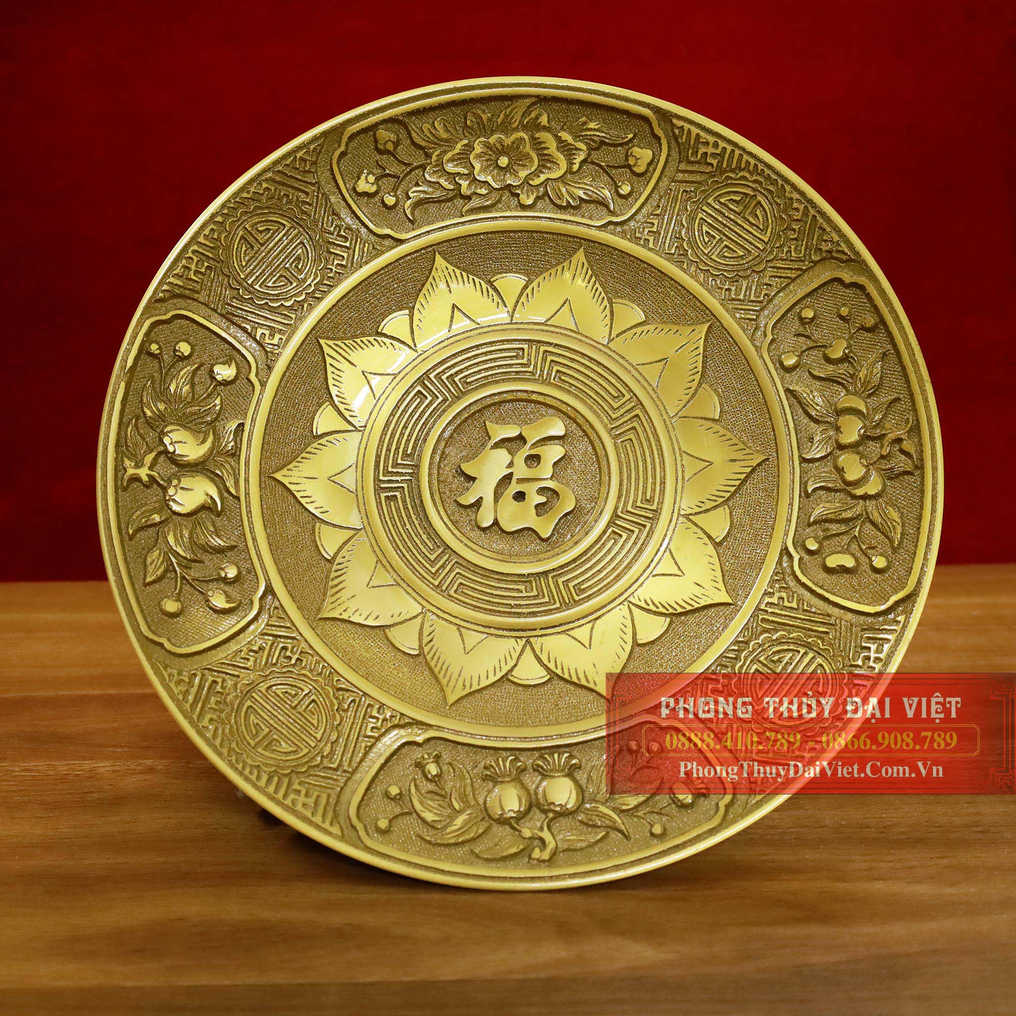 Mâm bồng chữ Phúc bằng đồng nguyên chất vàng đậm