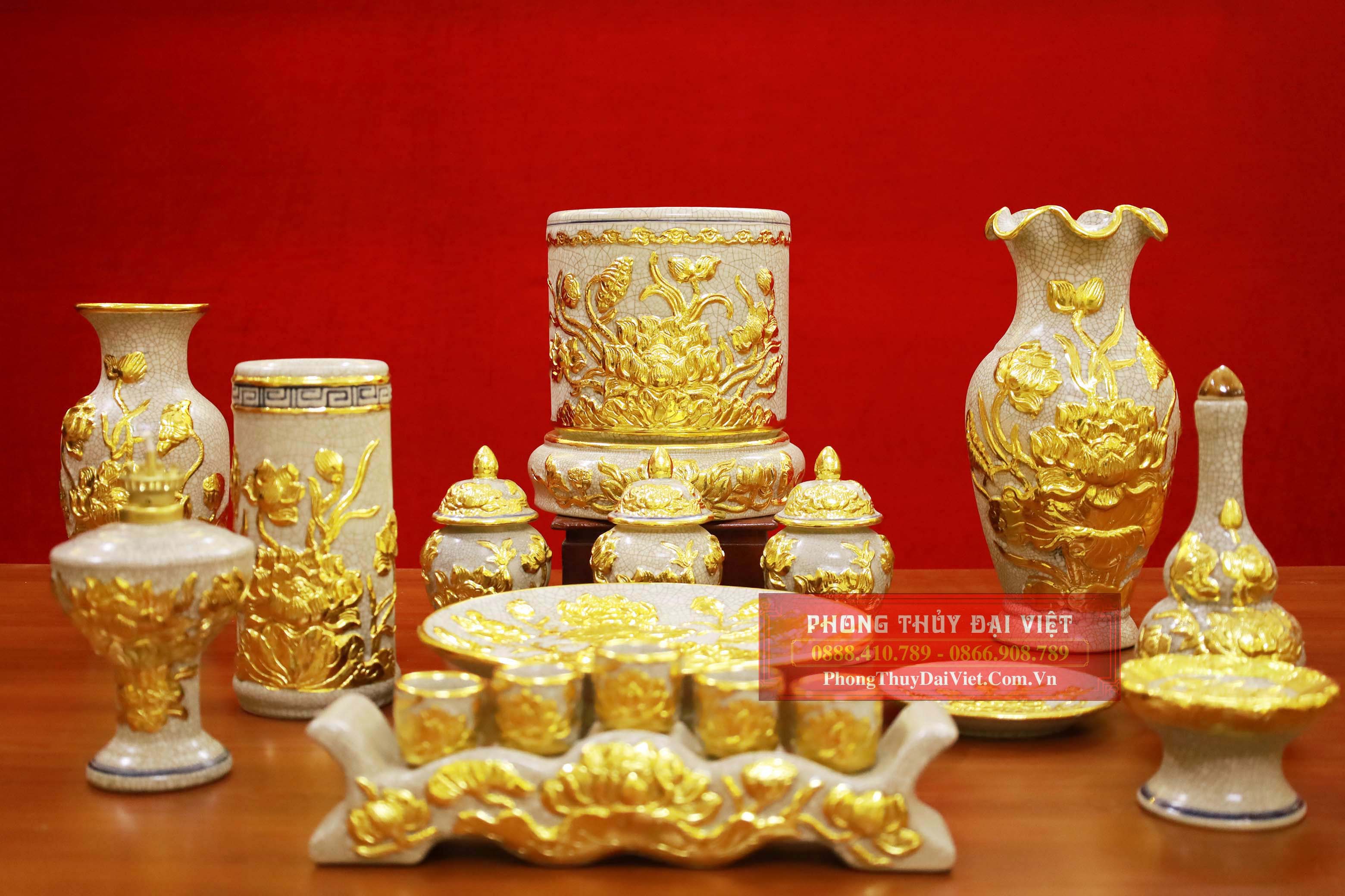 4. Bộ đồ thờ men rạn đắp nổi dát vàng