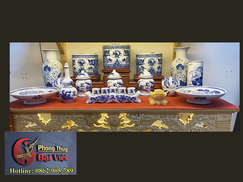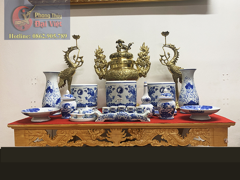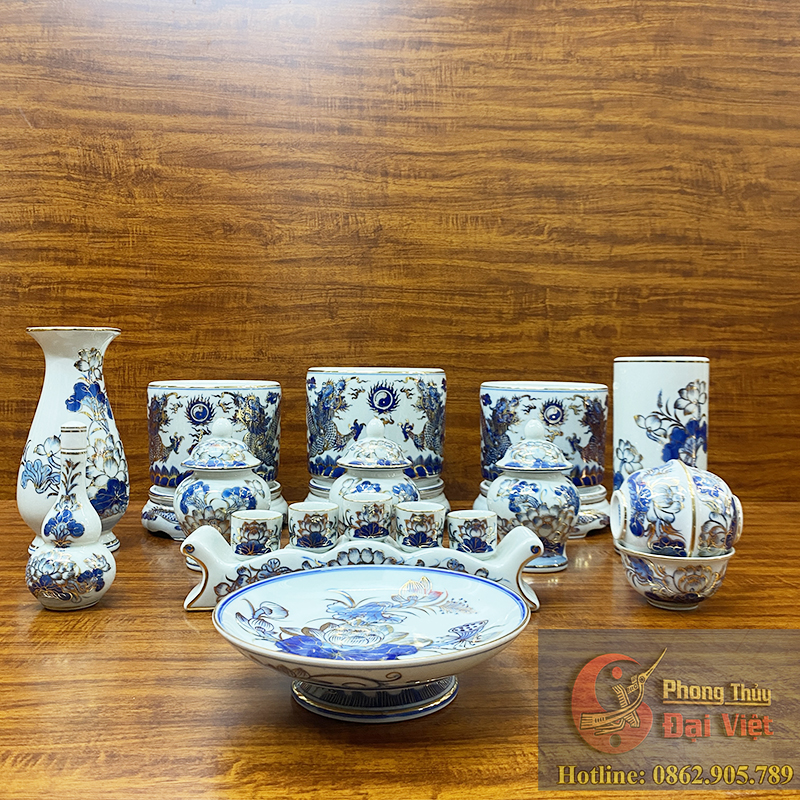 Bộ đồ thờ men lam Bát Tràng cao cấp