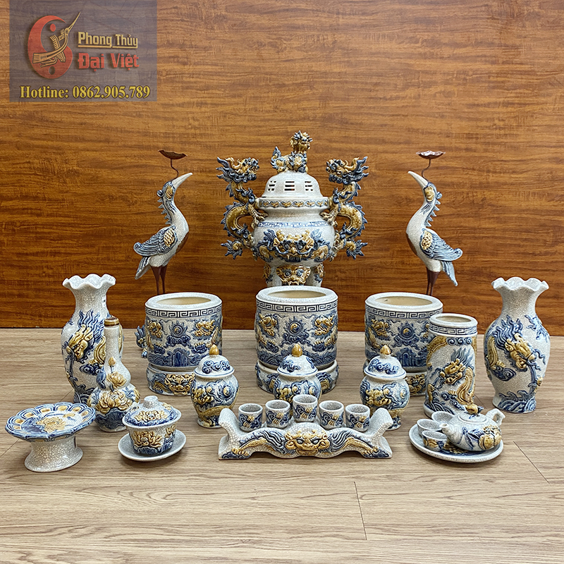 Bộ đồ thờ men rạn đắp nổi Bát Tràng cao cấp