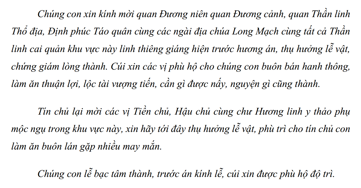 - Khi làm lễ, cần khấn theo nội dung sau: