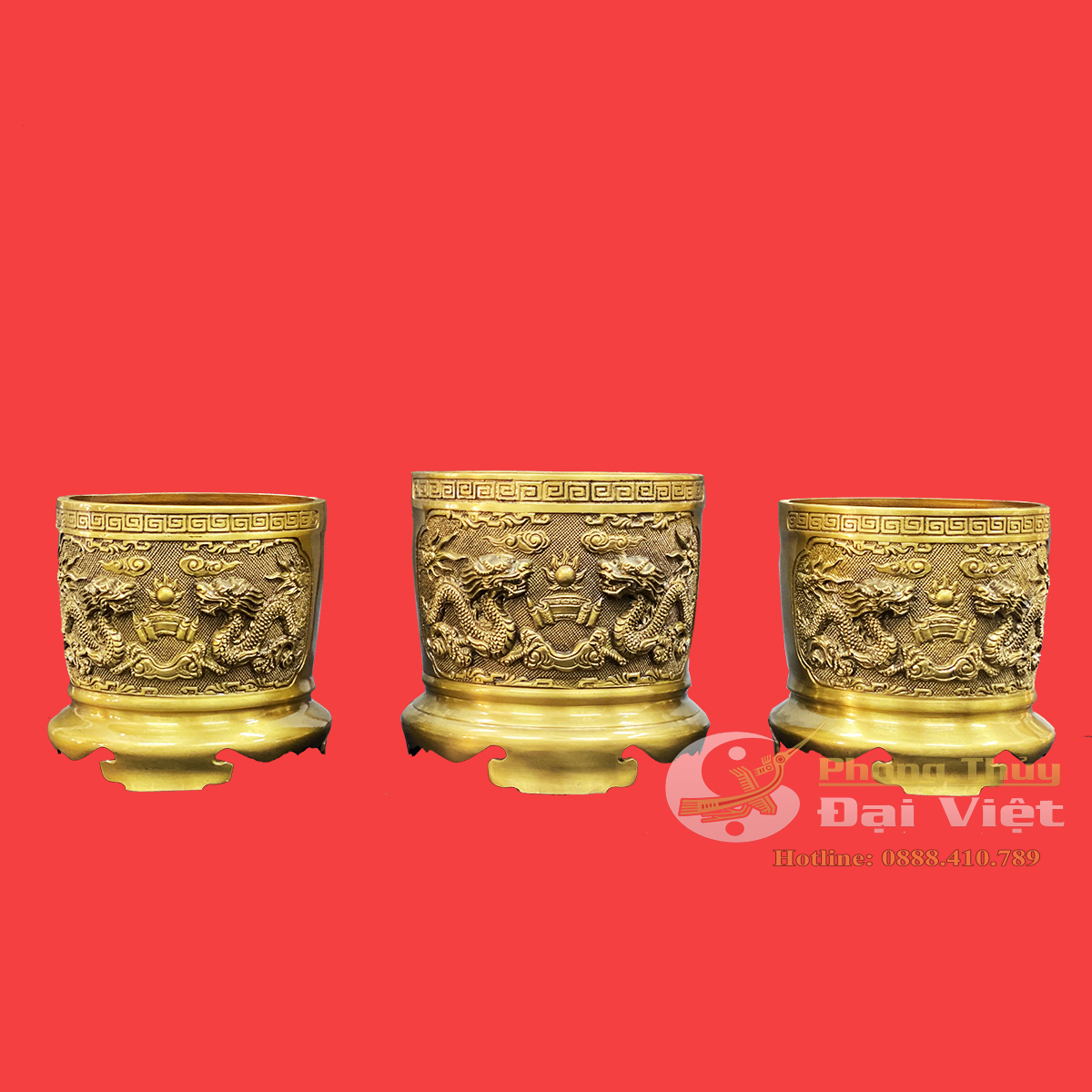 - Đài thờ: Đây là một vật phẩm quan trọng trong bộ thờ cúng bằng đồng, dùng để chứa rượu, nước, muối hoặc gạo tùy theo phong tục từng nơi với ý nghĩa mong muốn sung túc, đủ đầy, thanh tịnh tượng trưng cho hũ gạo, hũ vàng và hũ bạc trong gia đình, tạo nên một không gian thờ cúng ấm áp và sang trọng.