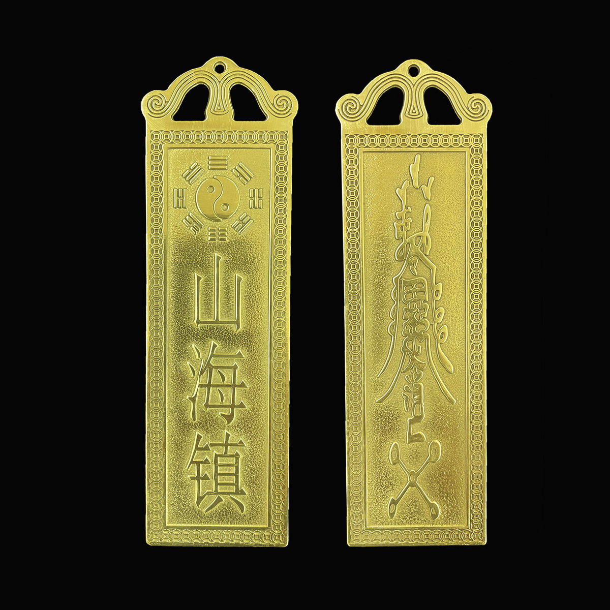 - Công Dụng: Kim bài sơn hải trấn là một trong những vật phẩm phong thủy quan trọng để hóa giải các sát khí tiêu cực và bảo vệ ngôi nhà của bạn. Với khả năng hóa giải các loại sát khí như bích đao sát, đường cái đâm thẳng vào cửa, các loại kim bài sơn hải trấn sẽ giúp bạn an tâm hơn về sức khỏe và tài lộc của gia đình.