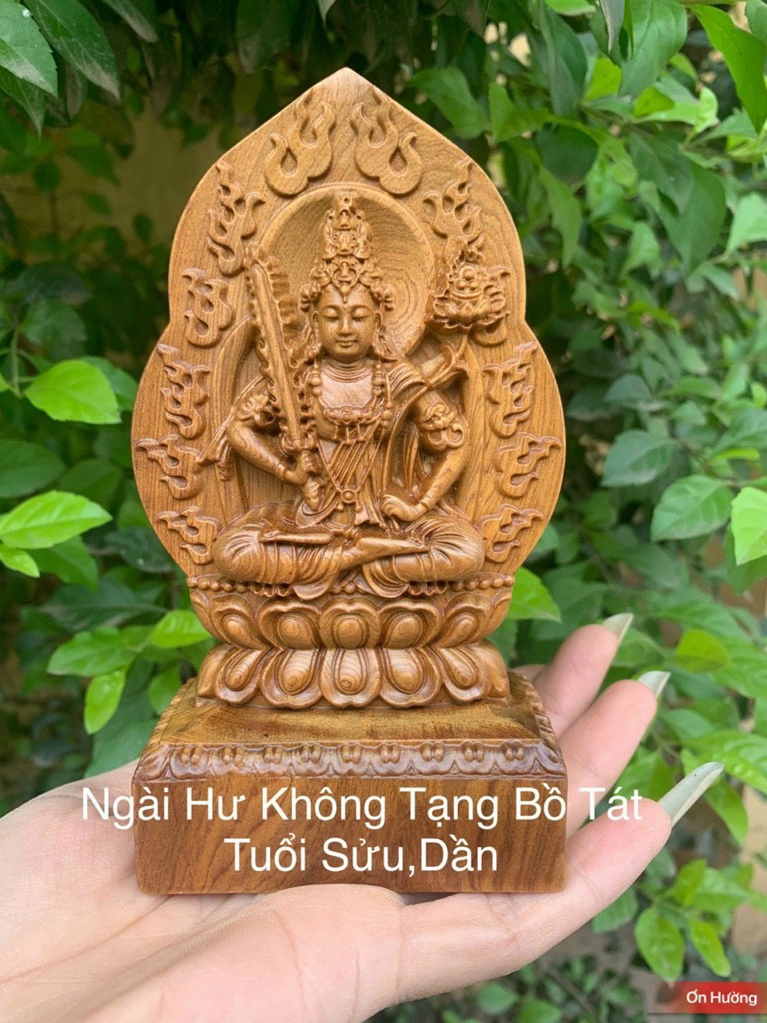 Phật bản mệnh tuổi Sửu Dần - Hư không tạng Bồ Tát gỗ bách xanh14.5x8x4cm