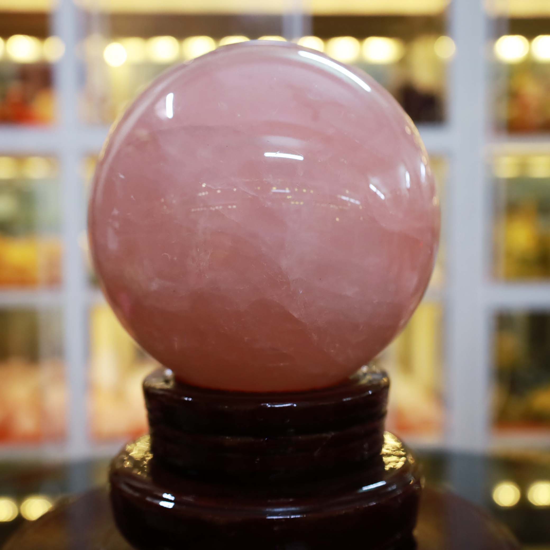 Quả cầu thạch anh hồng là vật phẩm phong thuỷ khối cầu, được chế tác từ đá thạch anh hồng hoàn toàn tự nhiên. Đá thạch anh hồng là một dạng đá quý của họ đá thạch anh. Đá có màu hồng nhạt, có độ trong suốt mờ và bóng. Thạch anh là một trong số các loại đá quý được yêu thích nhất hiện nay không chỉ bởi vẻ đẹp nhẹ nhàng, dịu êm mà còn vì nó là biểu tượng cho tình yêu, hạnh phúc.