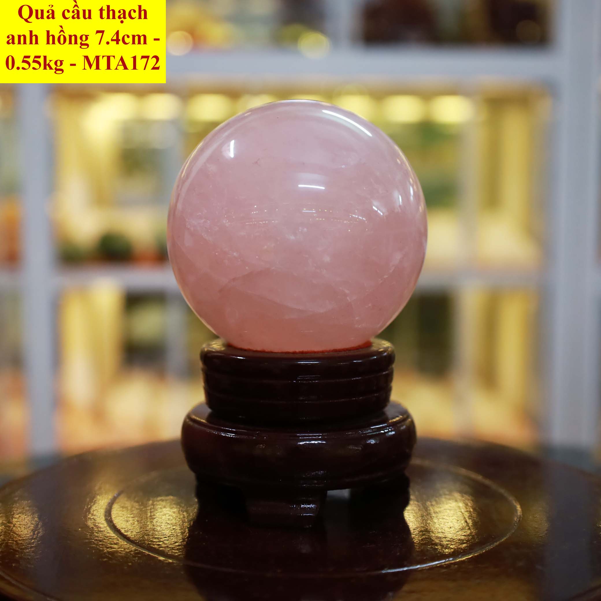 Quả cầu thạch anh hồng tự nhiên ĐK 7.4cm - 0.55kg - MTA172