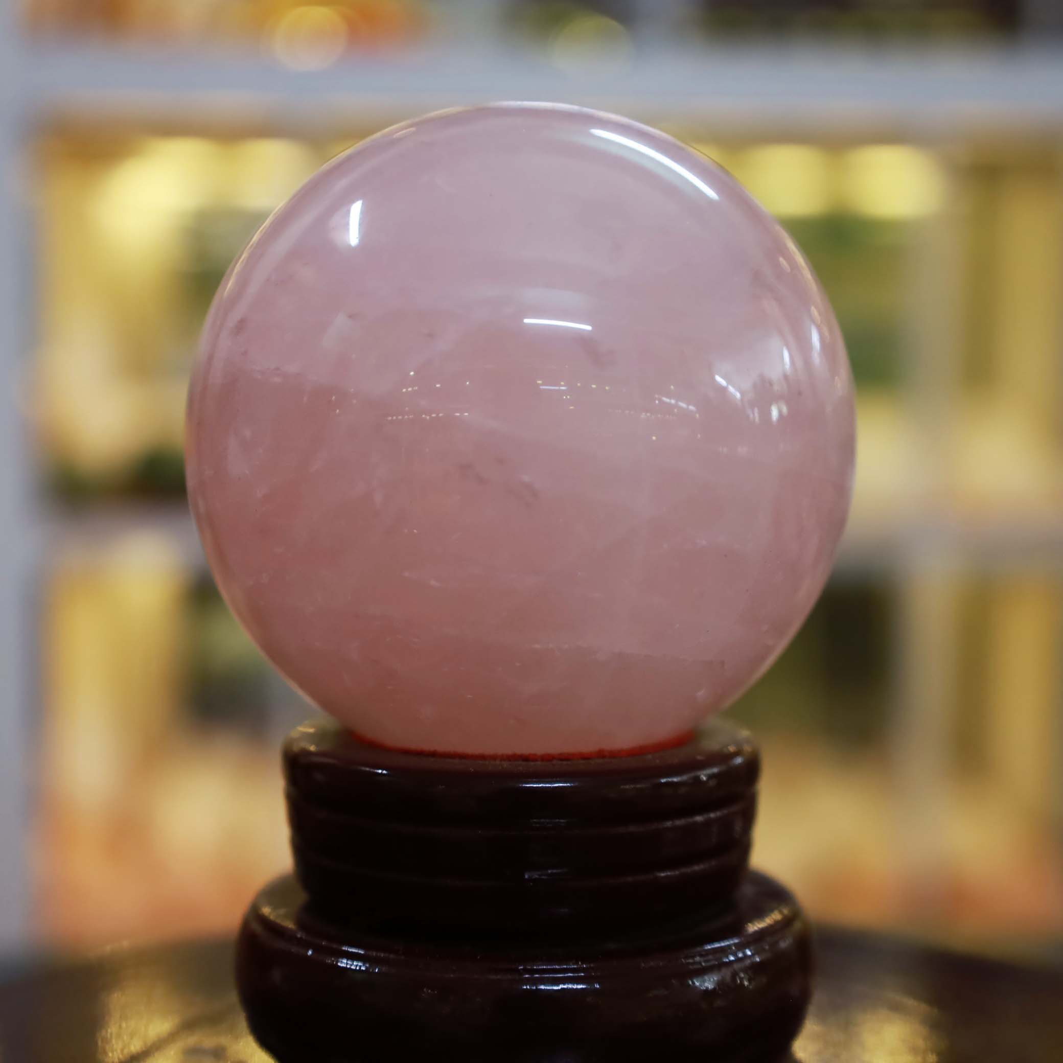 Quả cầu thạch anh hồng là vật phẩm phong thuỷ khối cầu, được chế tác từ đá thạch anh hồng hoàn toàn tự nhiên. Đá thạch anh hồng là một dạng đá quý của họ đá thạch anh. Đá có màu hồng nhạt, có độ trong suốt mờ và bóng. Thạch anh là một trong số các loại đá quý được yêu thích nhất hiện nay không chỉ bởi vẻ đẹp nhẹ nhàng, dịu êm mà còn vì nó là biểu tượng cho tình yêu, hạnh phúc.