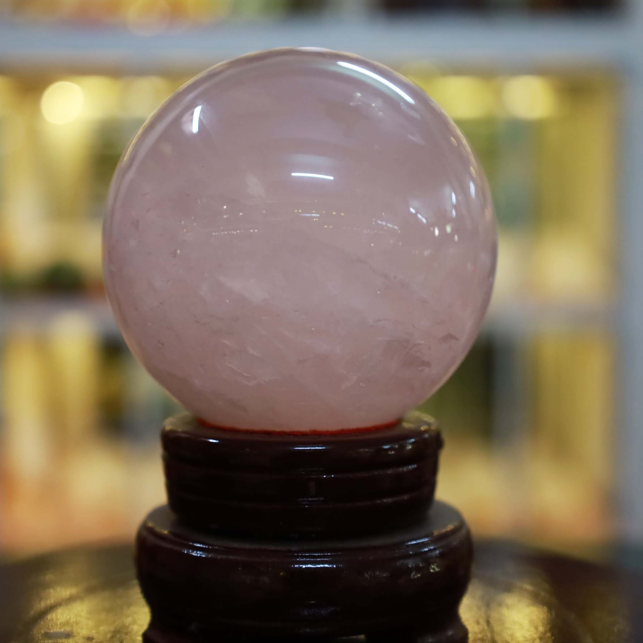 Quả cầu thạch anh hồng là vật phẩm phong thuỷ khối cầu, được chế tác từ đá thạch anh hồng hoàn toàn tự nhiên. Đá thạch anh hồng là một dạng đá quý của họ đá thạch anh. Đá có màu hồng nhạt, có độ trong suốt mờ và bóng. Thạch anh là một trong số các loại đá quý được yêu thích nhất hiện nay không chỉ bởi vẻ đẹp nhẹ nhàng, dịu êm mà còn vì nó là biểu tượng cho tình yêu, hạnh phúc.