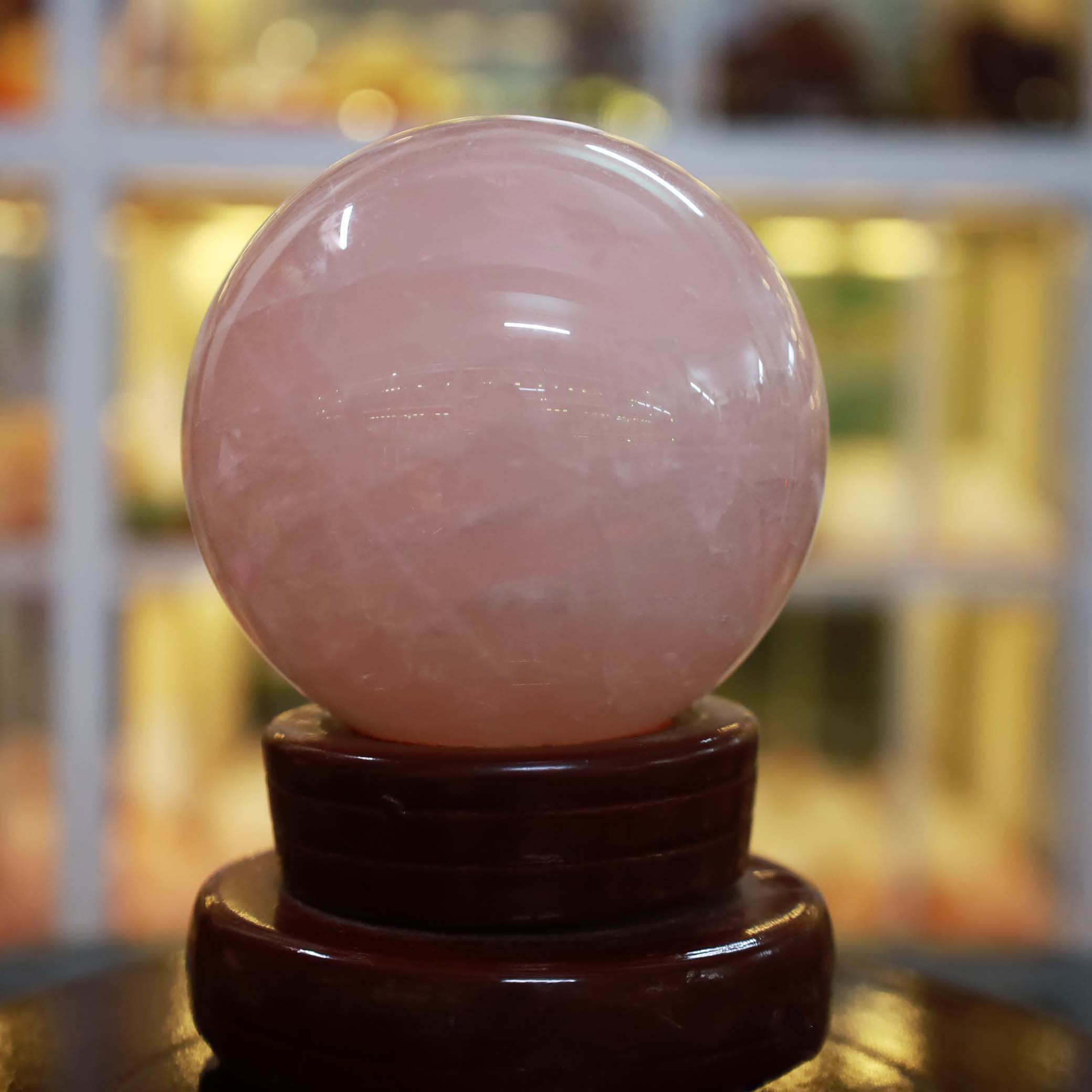 Quả cầu thạch anh hồng là vật phẩm phong thuỷ khối cầu, được chế tác từ đá thạch anh hồng hoàn toàn tự nhiên. Đá thạch anh hồng là một dạng đá quý của họ đá thạch anh. Đá có màu hồng nhạt, có độ trong suốt mờ và bóng. Thạch anh là một trong số các loại đá quý được yêu thích nhất hiện nay không chỉ bởi vẻ đẹp nhẹ nhàng, dịu êm mà còn vì nó là biểu tượng cho tình yêu, hạnh phúc.