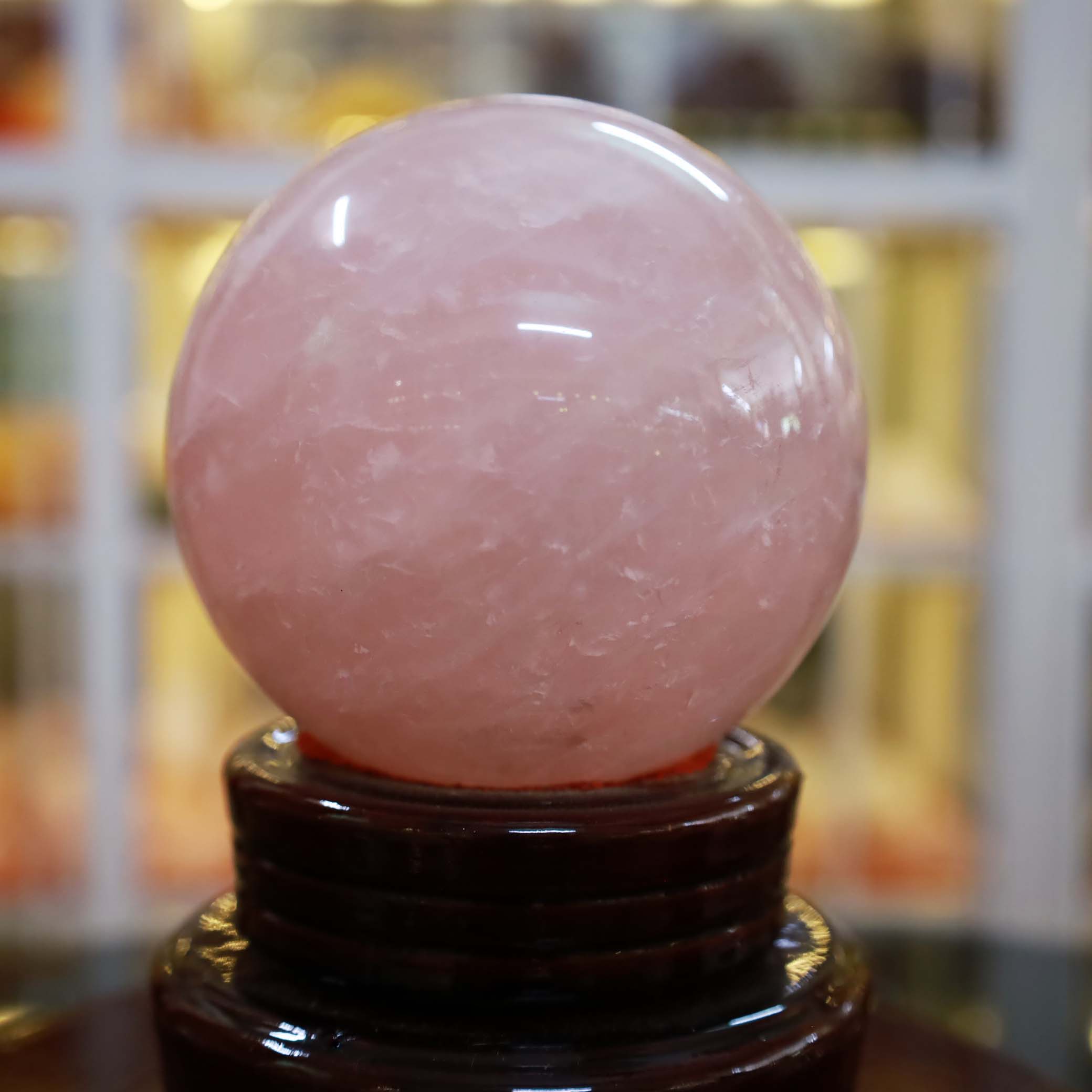 Quả cầu thạch anh hồng là vật phẩm phong thuỷ khối cầu, được chế tác từ đá thạch anh hồng hoàn toàn tự nhiên. Đá thạch anh hồng là một dạng đá quý của họ đá thạch anh. Đá có màu hồng nhạt, có độ trong suốt mờ và bóng. Thạch anh là một trong số các loại đá quý được yêu thích nhất hiện nay không chỉ bởi vẻ đẹp nhẹ nhàng, dịu êm mà còn vì nó là biểu tượng cho tình yêu, hạnh phúc.