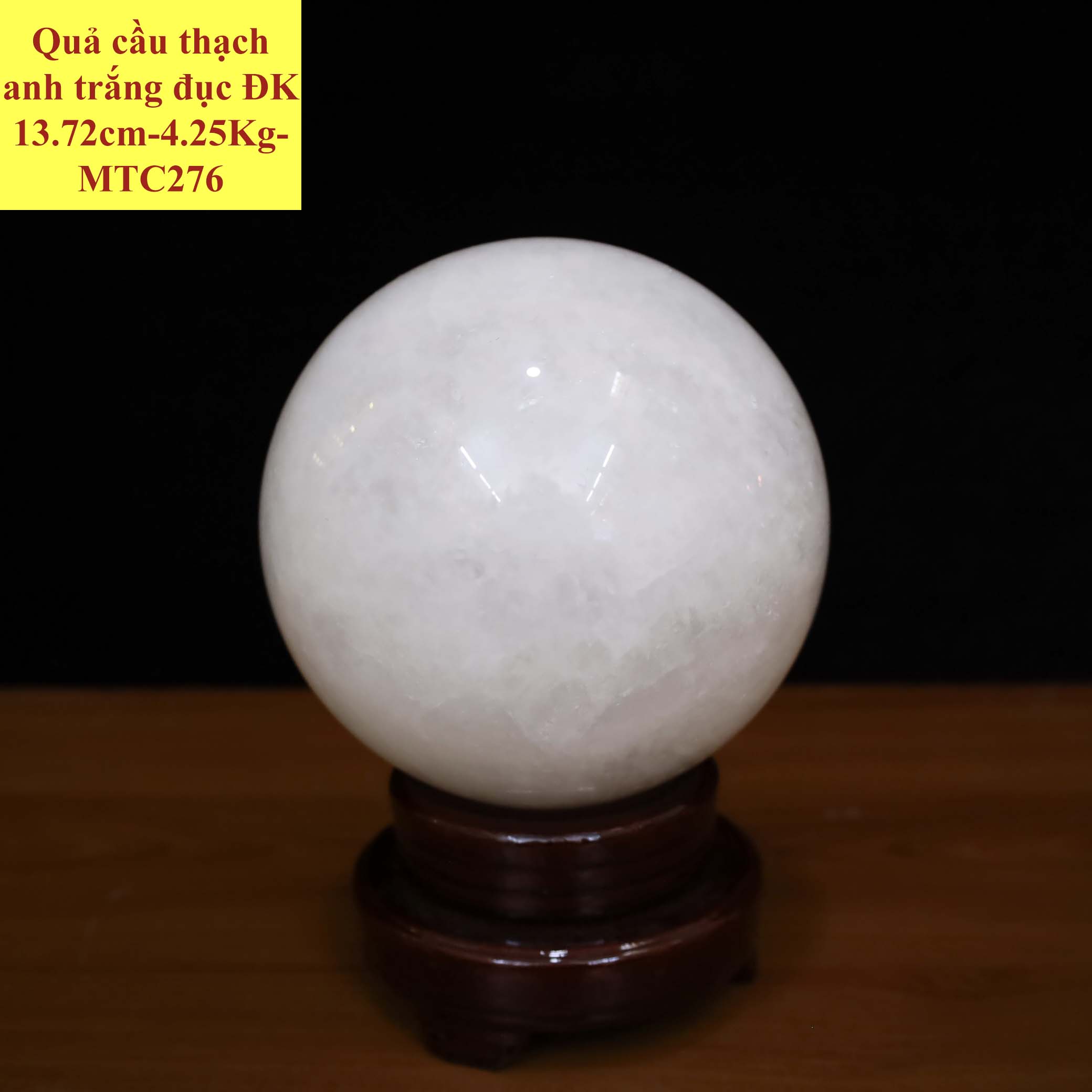 Quả cầu thạch anh trắng đục ĐK 13.72cm-4.25Kg-MTC276