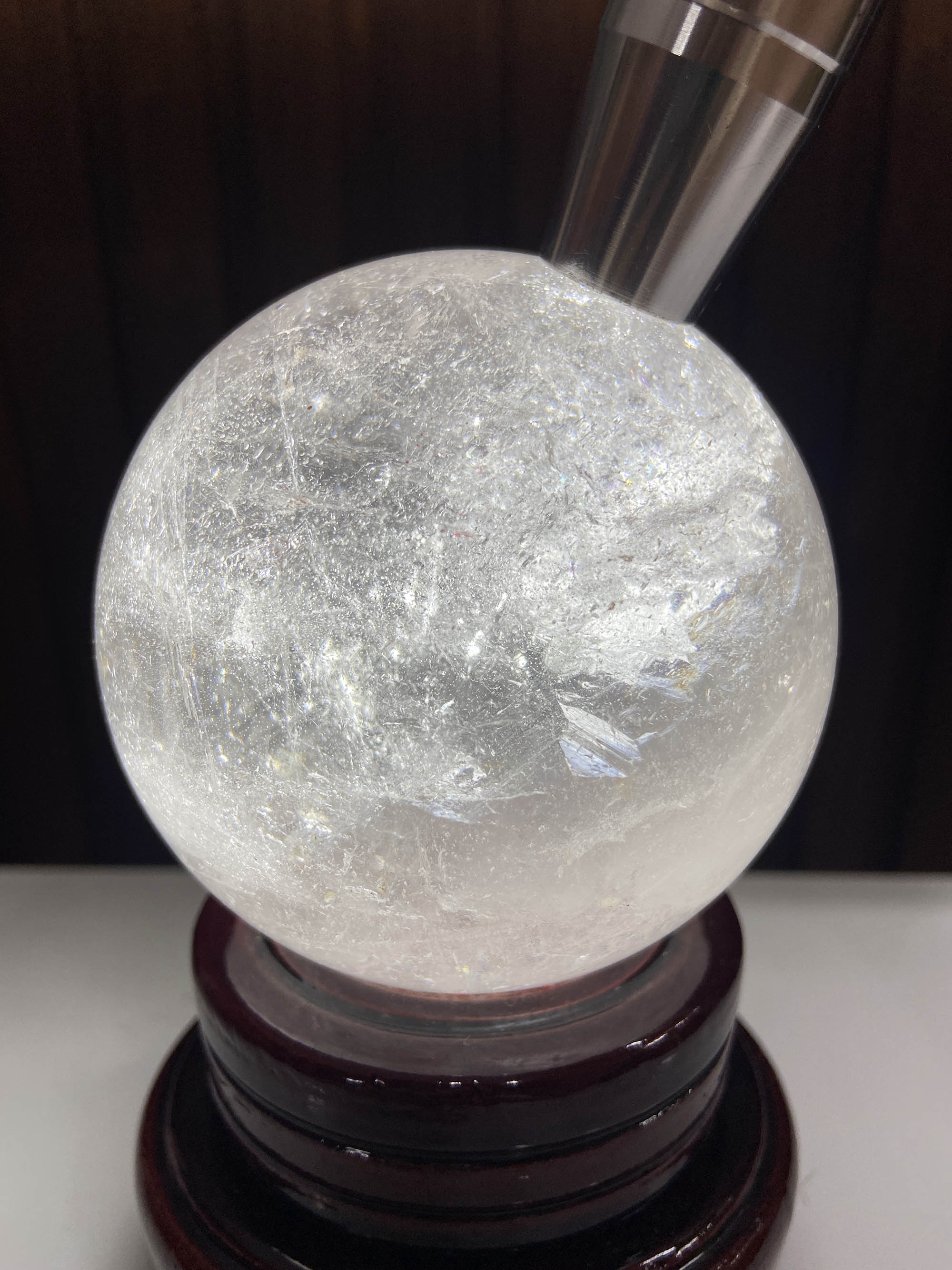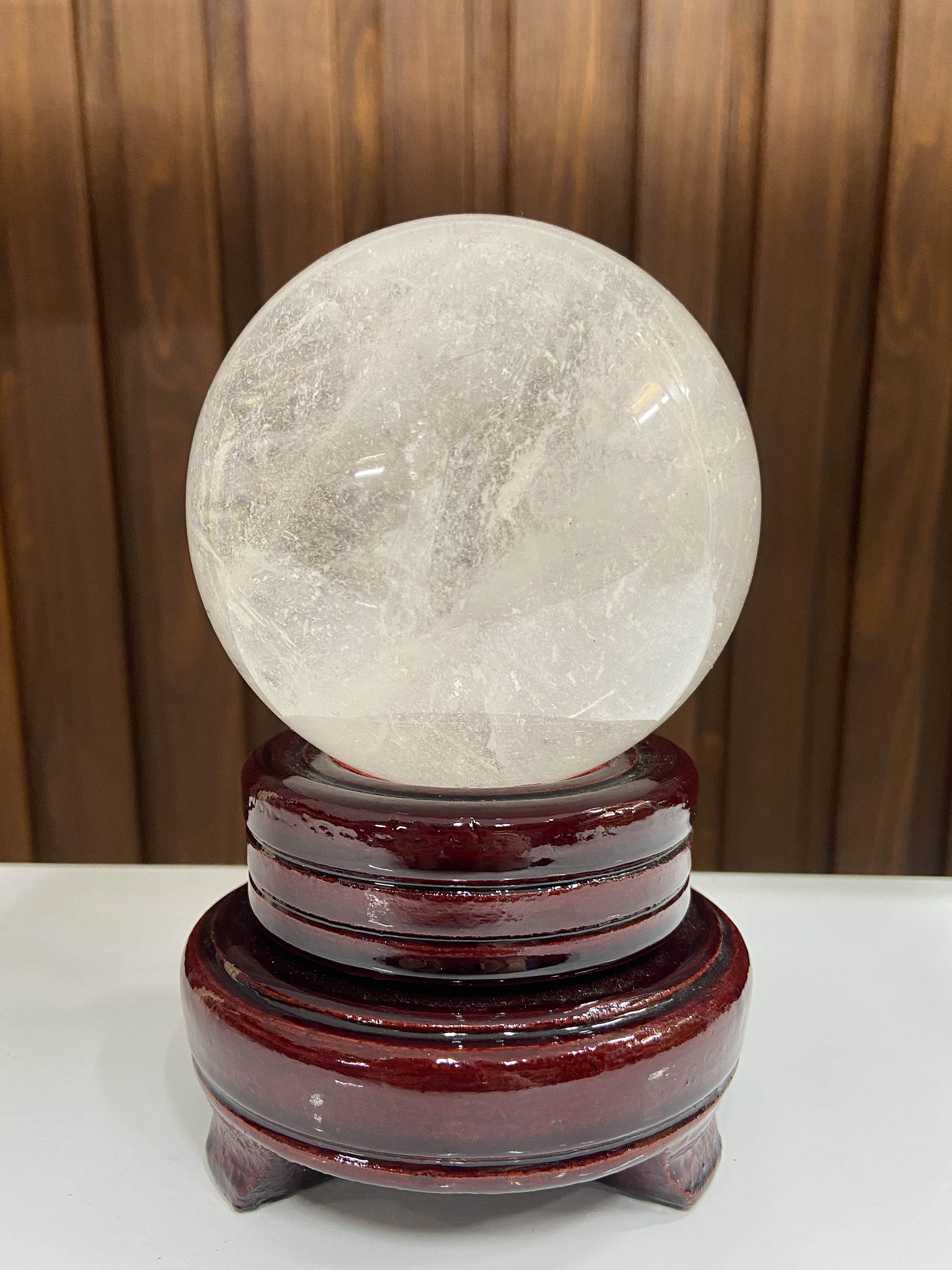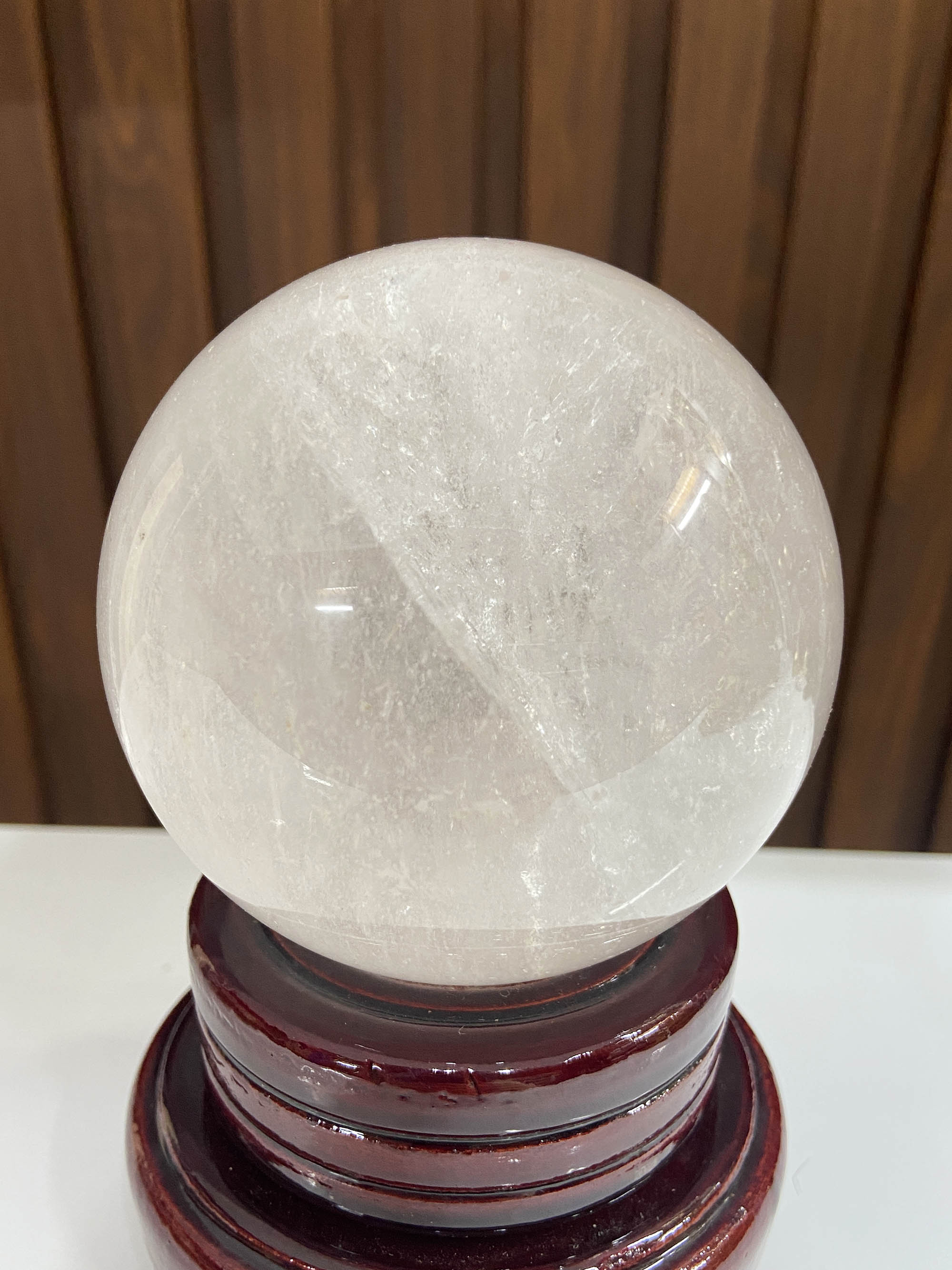 Quả cầu thạch anh trắng trong-ĐK 8.3cm-0.8kg-MTB626