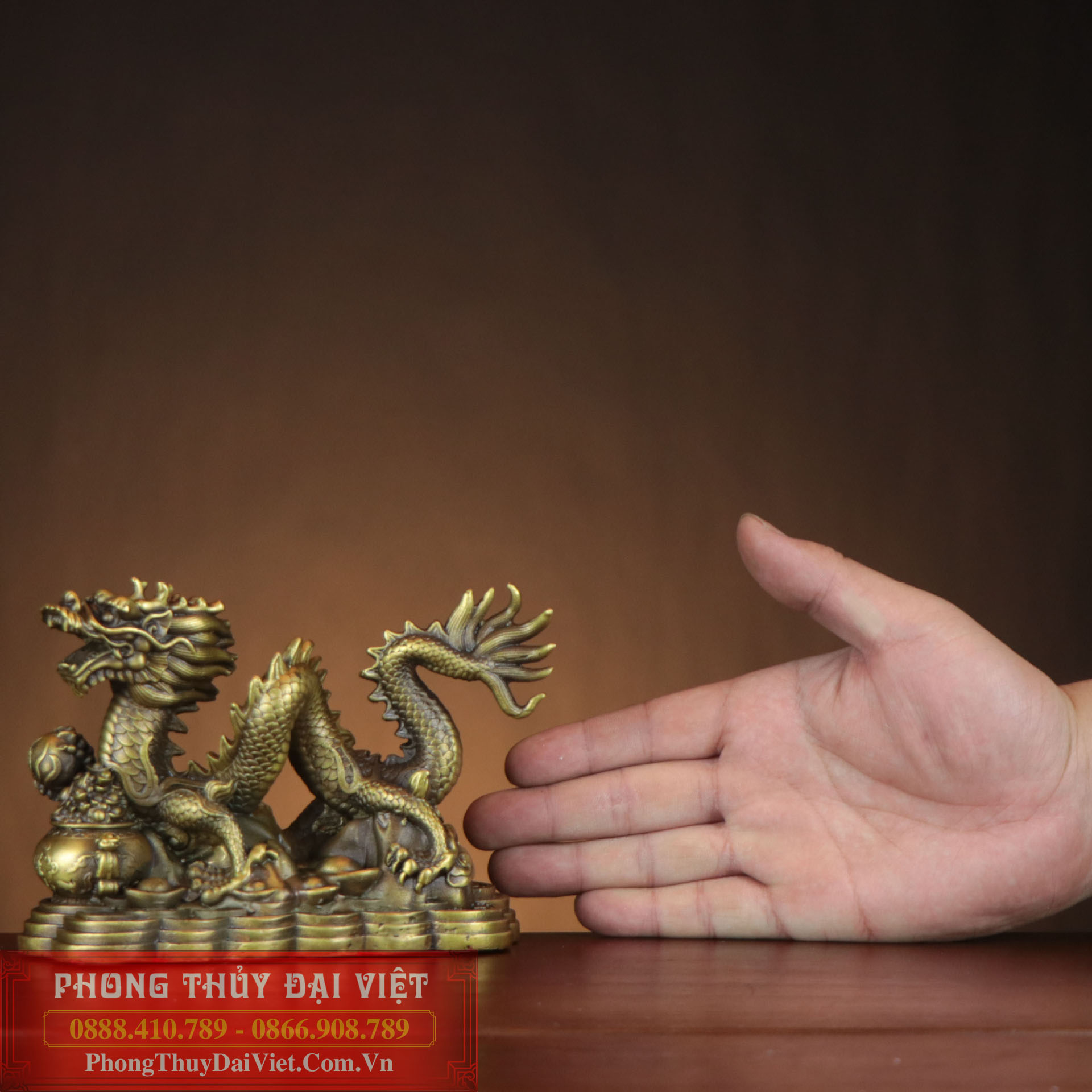 Rồng đế tiền ôm hũ vàng đồng 21x16x10cm - 1.85kg-PVN495